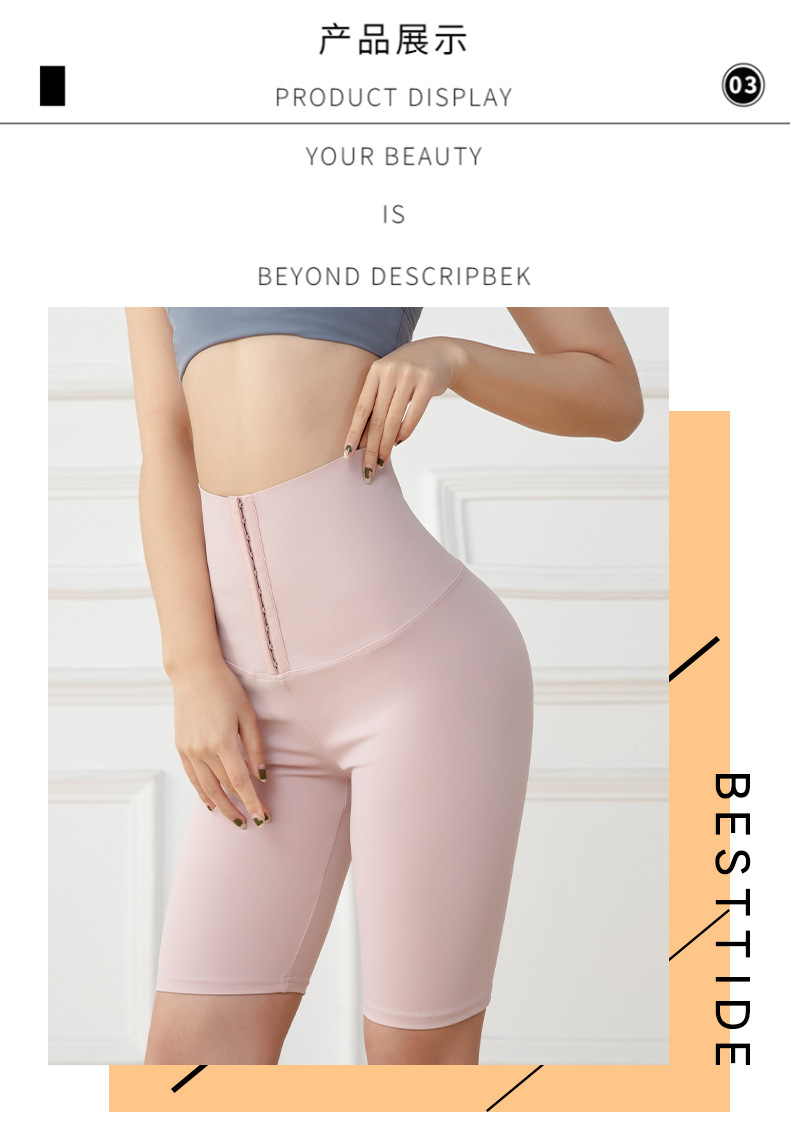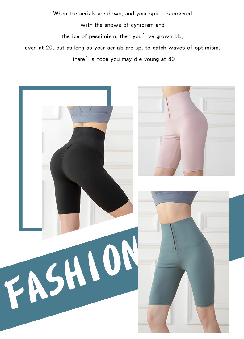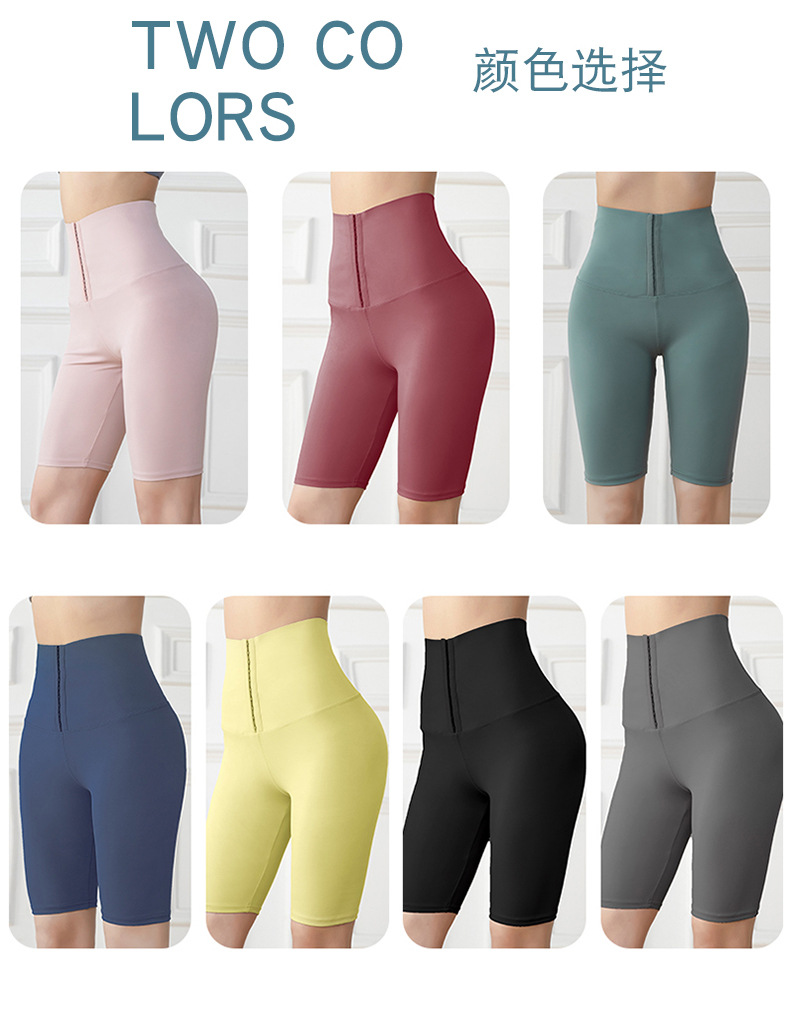 五分高腰紧身运动健身裤女欧美跨境排扣收腹瑜伽短裤 投诉