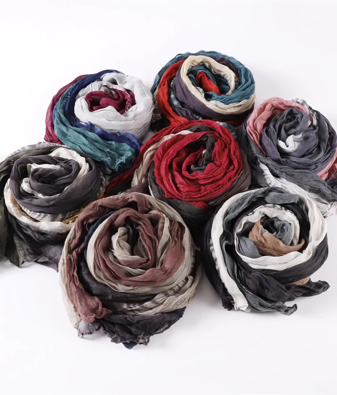 巴厘纱渐变色压皱围巾