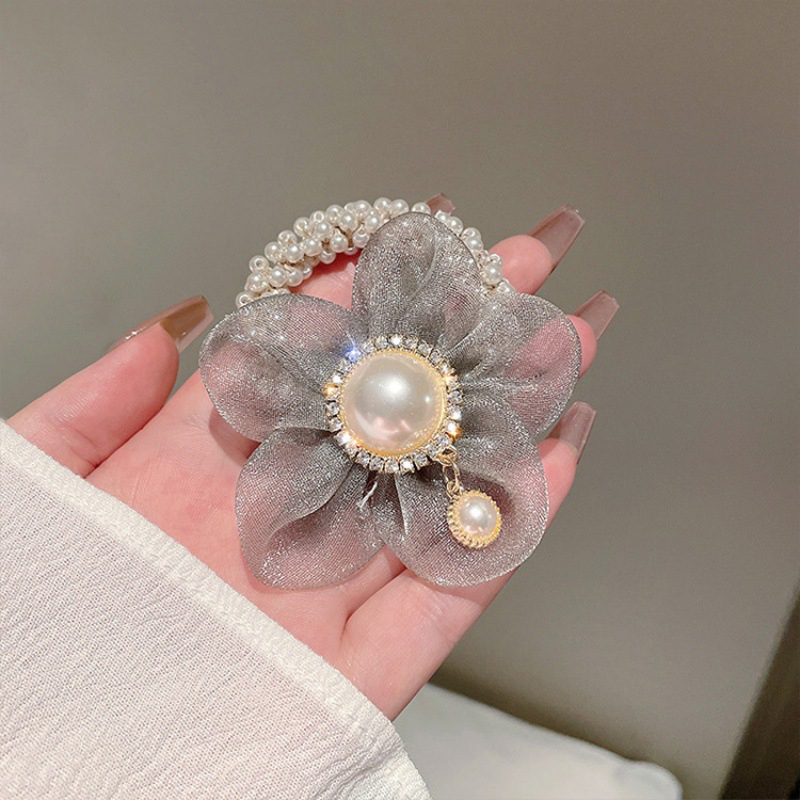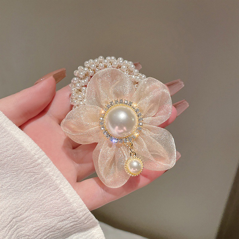 春夏轻奢花朵珍珠手链发圈韩版网红复古气质成人扎头发精品店头绳