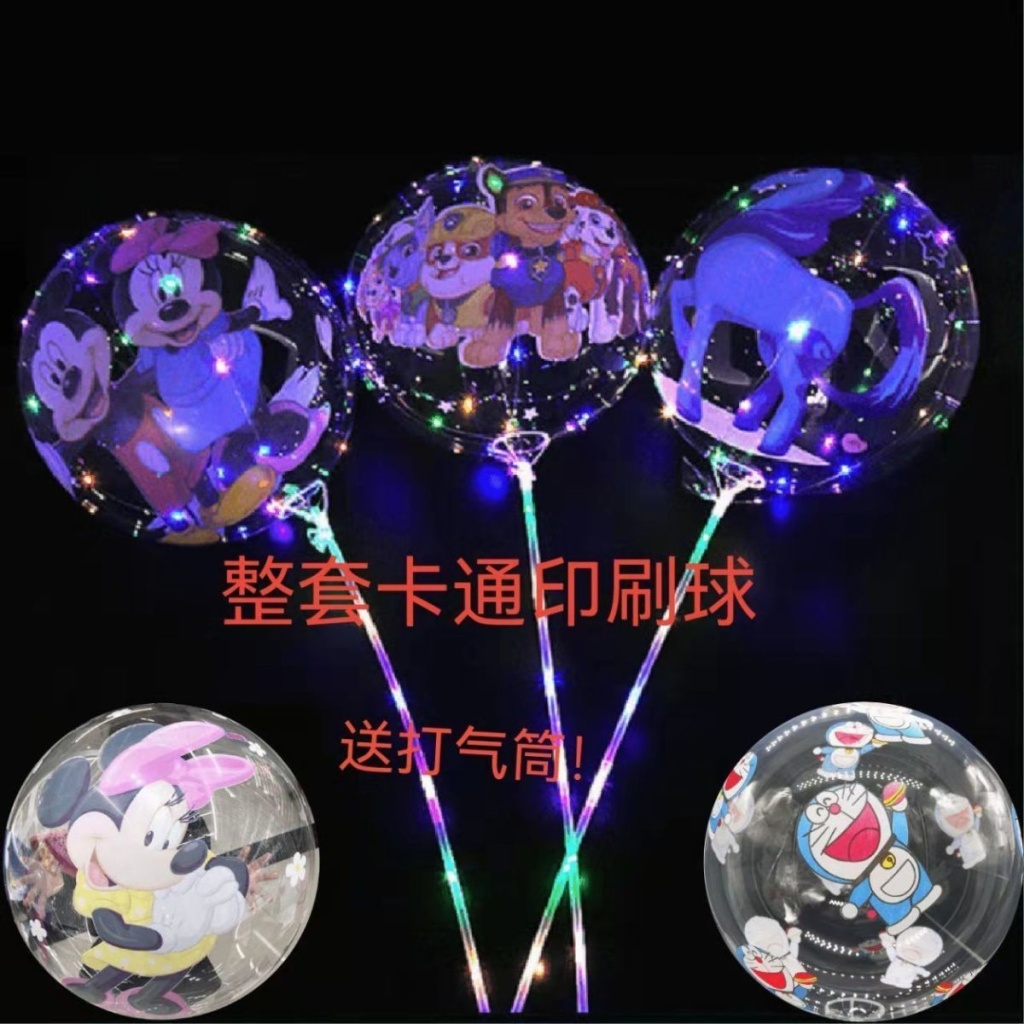 卡通印刷波波球带灯火爆款网红透明发光气球地推夜光卡通儿童批发 除偏远地区都包邮 送气筒 电池