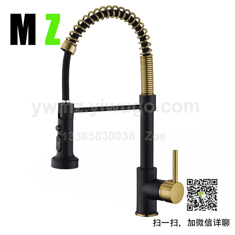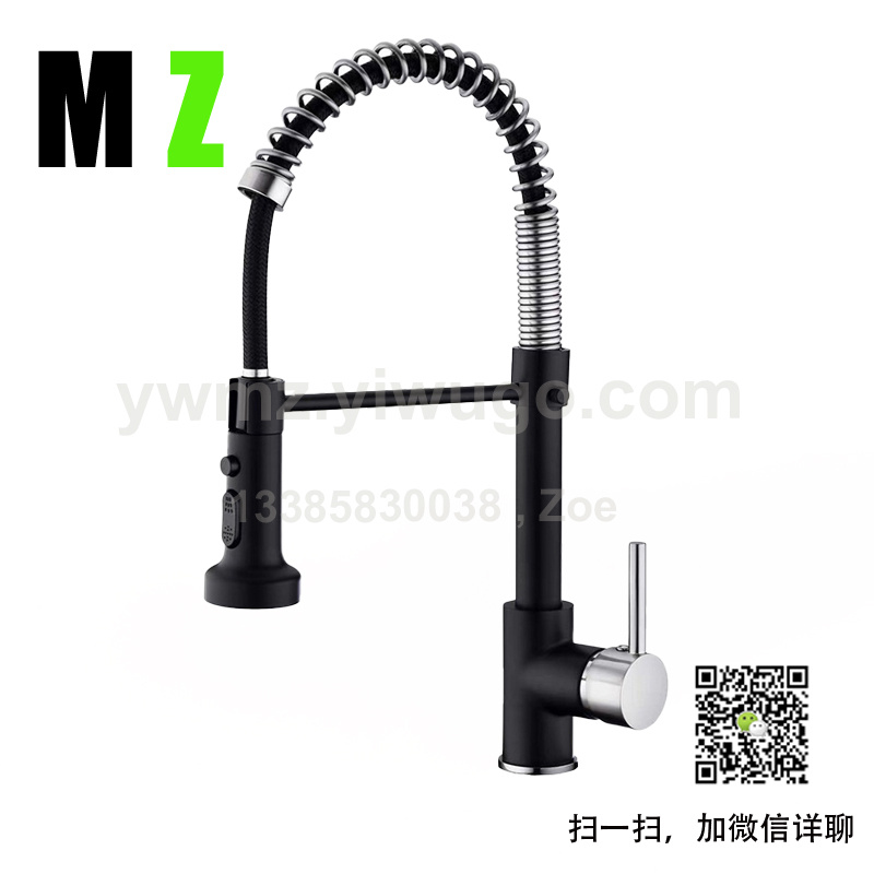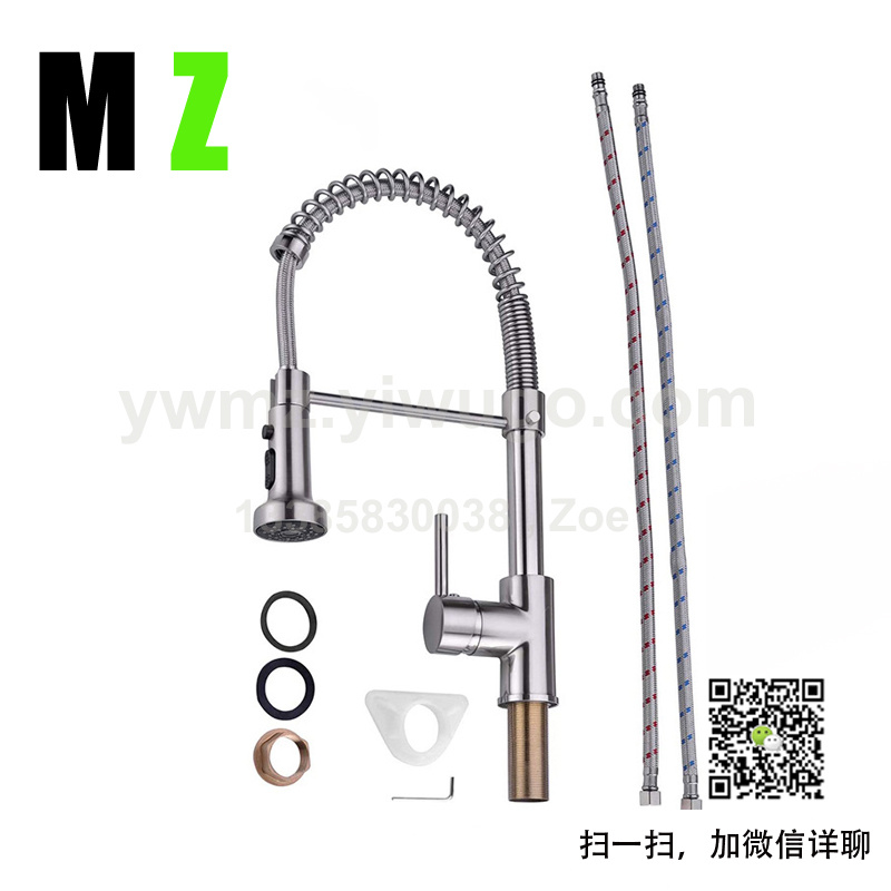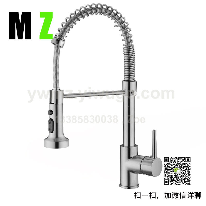 外贸拉丝美式弹簧单把可旋转式水龙头厨房水槽抽拉龙头