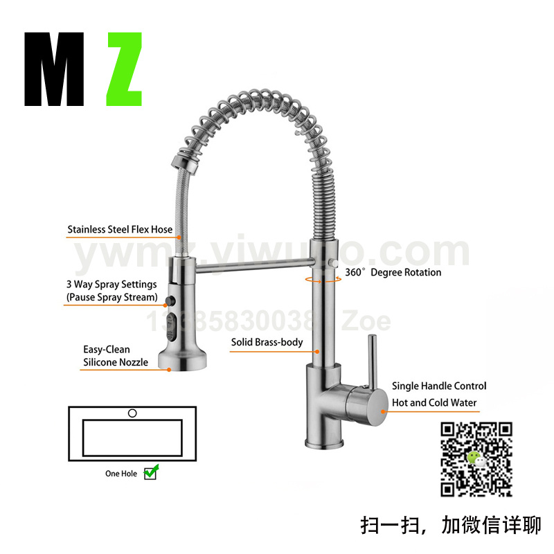 外贸拉丝美式弹簧单把可旋转式水龙头厨房水槽抽拉龙头 投诉