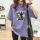 大码女装纯棉短袖t恤女宽松休闲胖mm180斤中长款韩版地摊紫色上衣 投诉