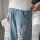 牛仔裤男批发 男士2022年新款潮牌九分破洞潮流浅色休闲长裤子 投诉