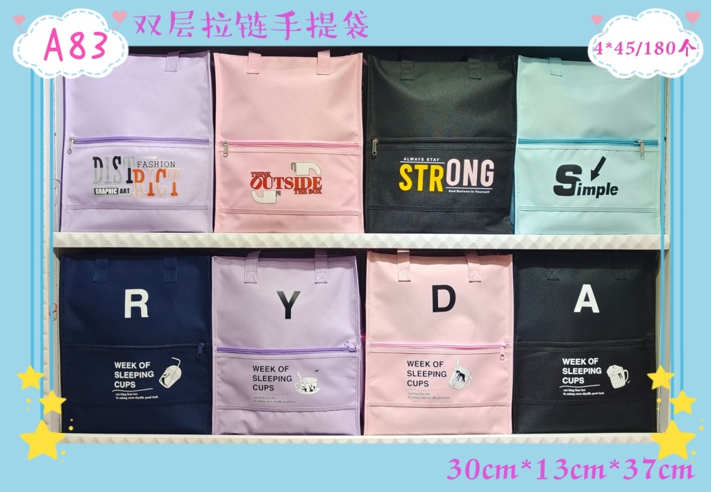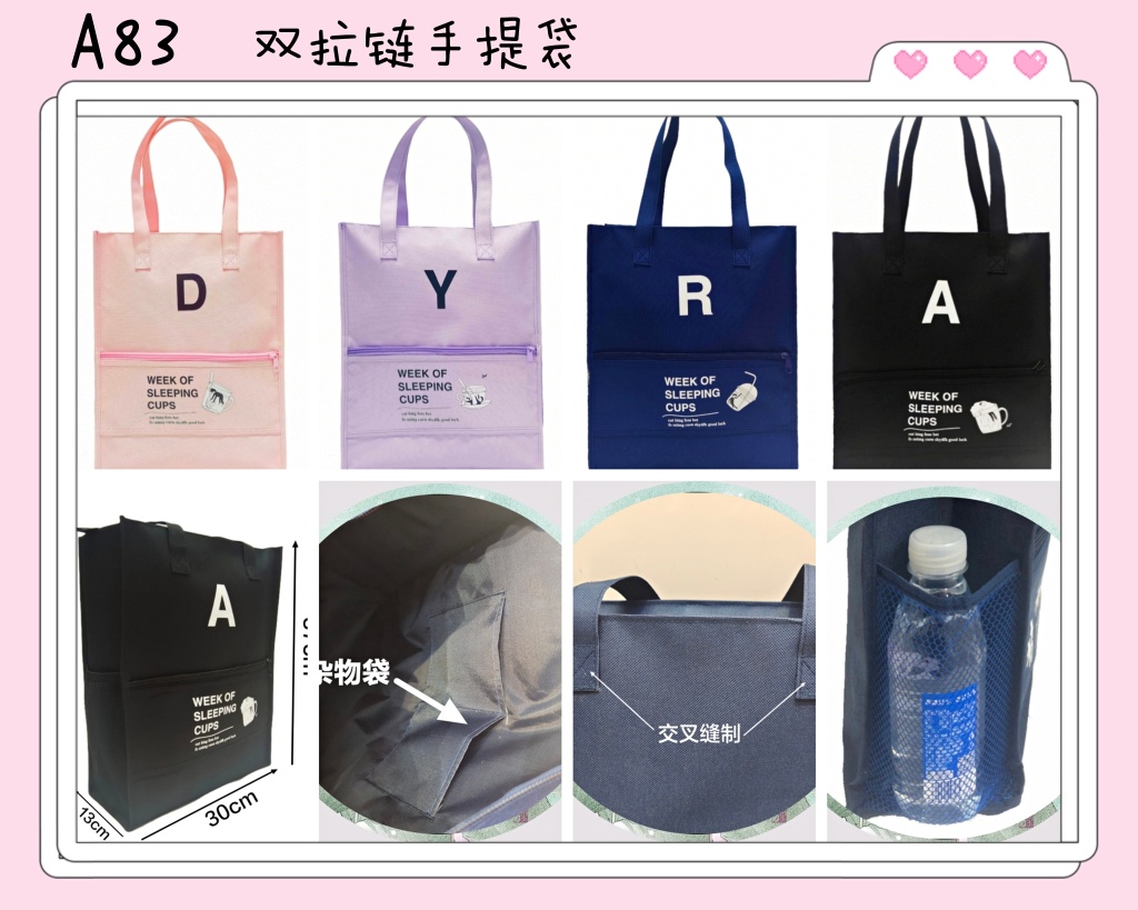 中性版两层拉链手提袋