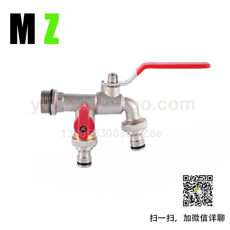 厂家黄铜镀镍双头水嘴手动单柄家用洗衣机水龙头外贸可定制