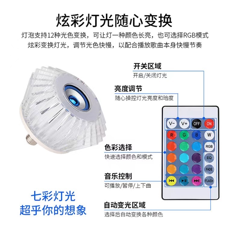 水晶蓝牙音乐灯LED七彩蓝牙音箱灯泡PRB智能遥控调光