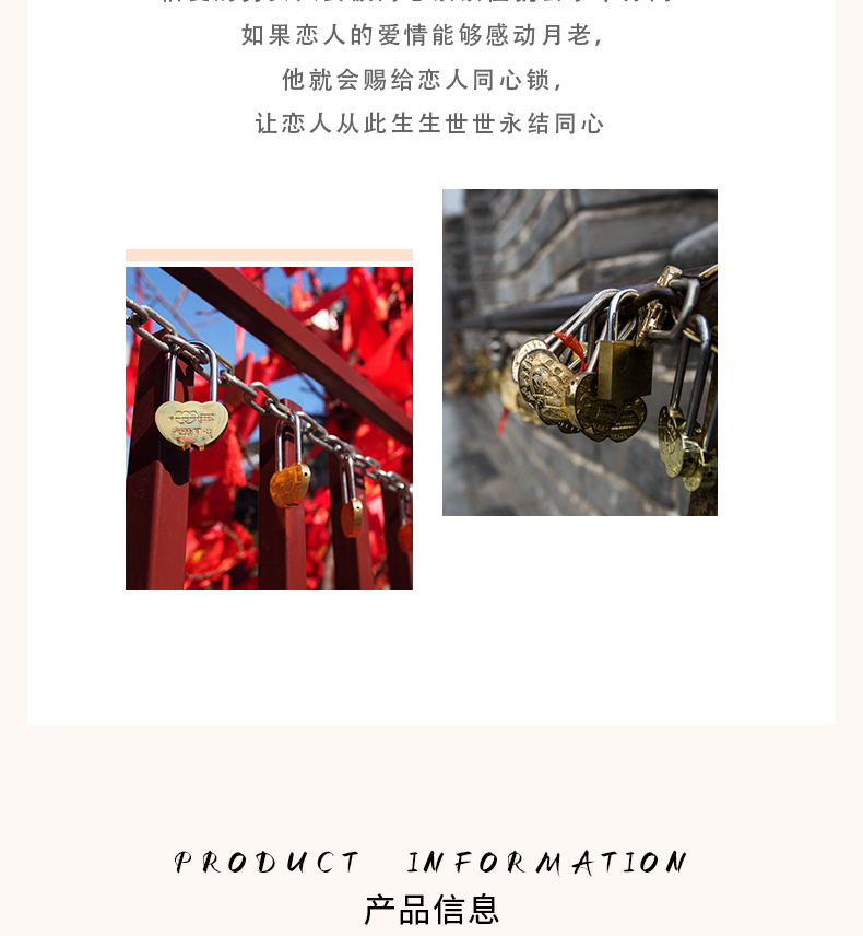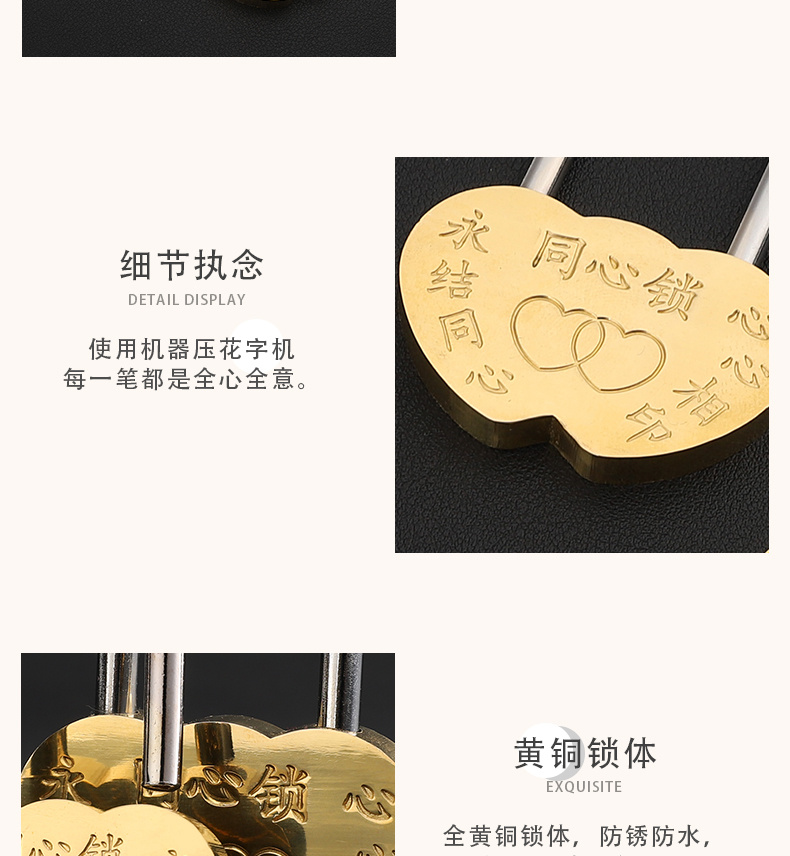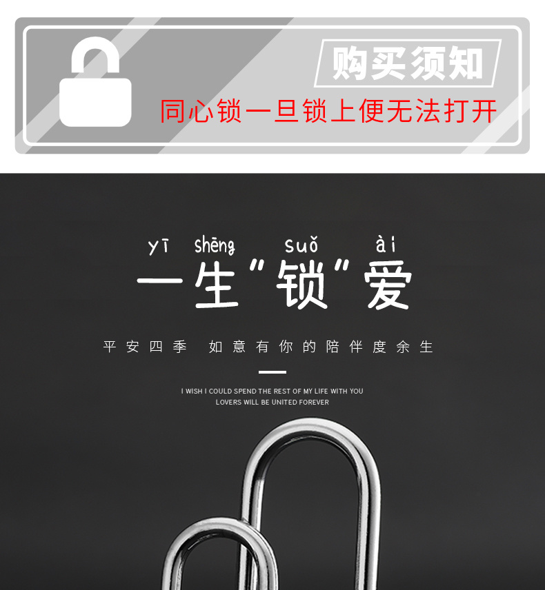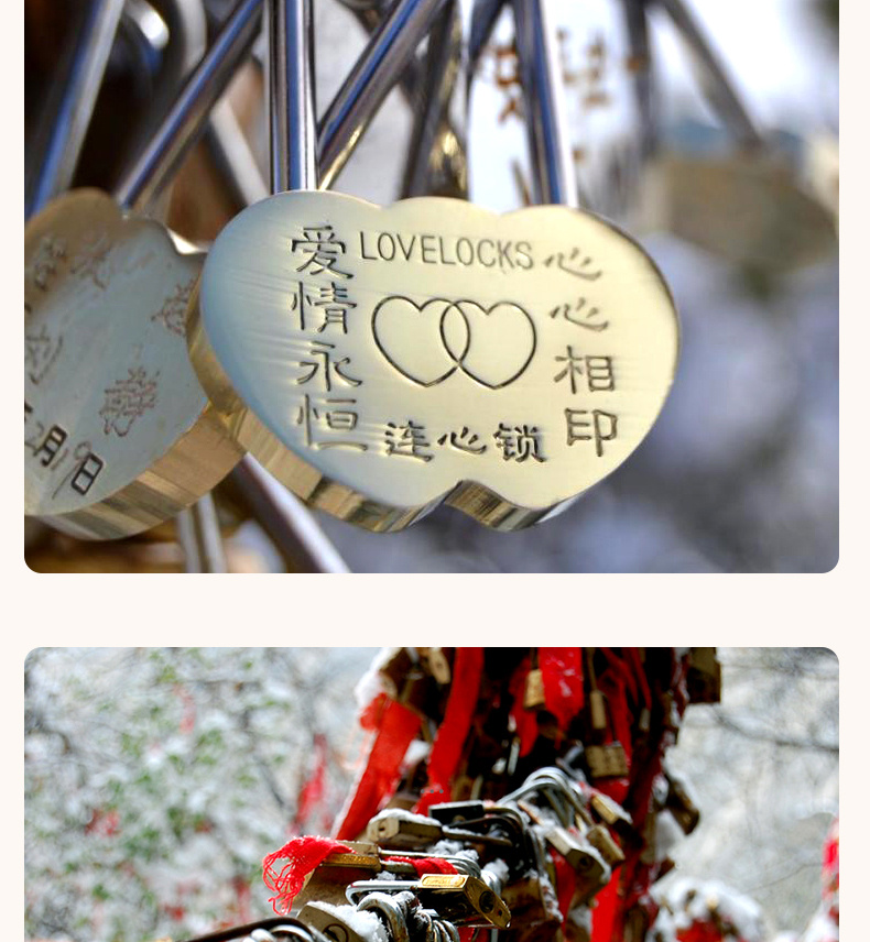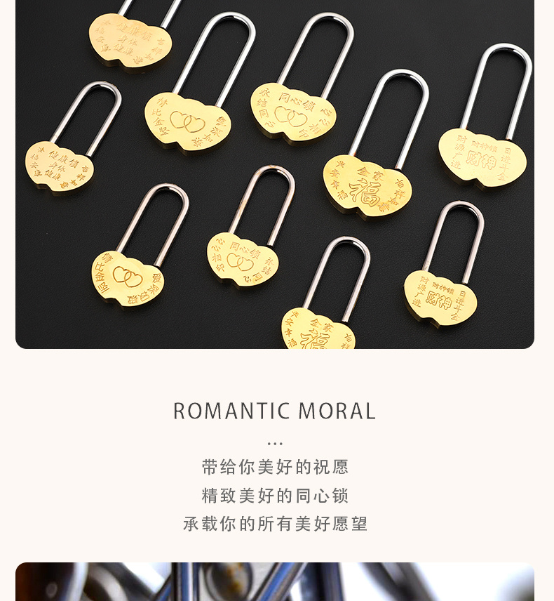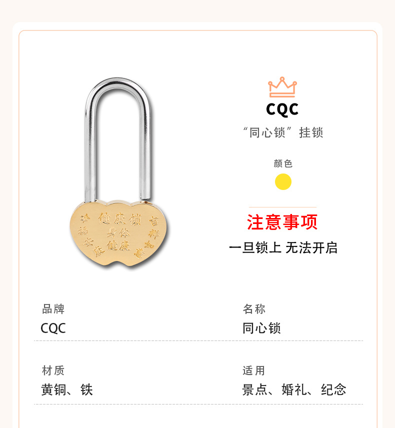 同心锁厂家直供旅游景区锁许愿锁爱情锁婚庆连心锁桃型锁全铜挂锁 投诉
