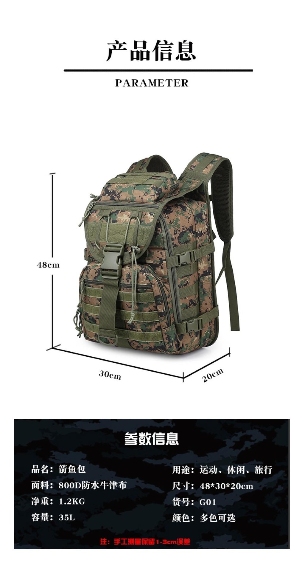 厂家X7战术电脑背包剑鱼包双肩背包旅行徒步野营包直户外迷彩背包 投诉