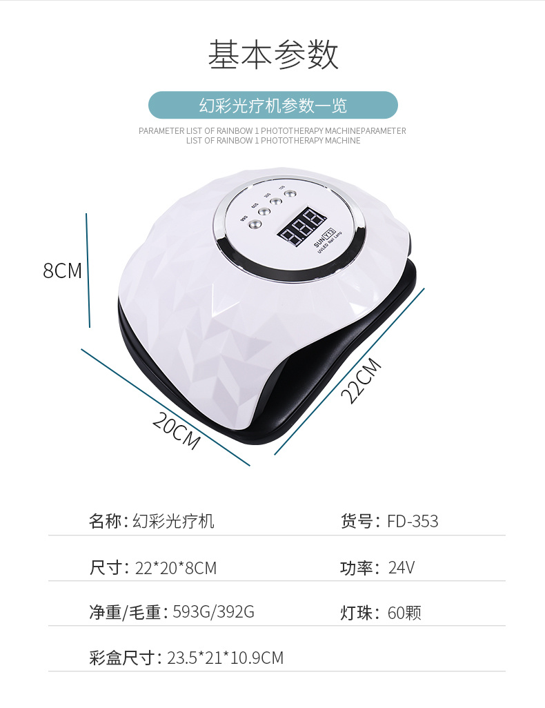 SUN Y13 248W智能美甲光疗机60颗双光源LED 红外线智能美甲灯专供出口 English | 投诉