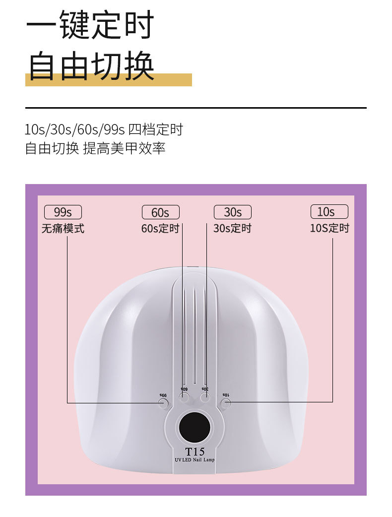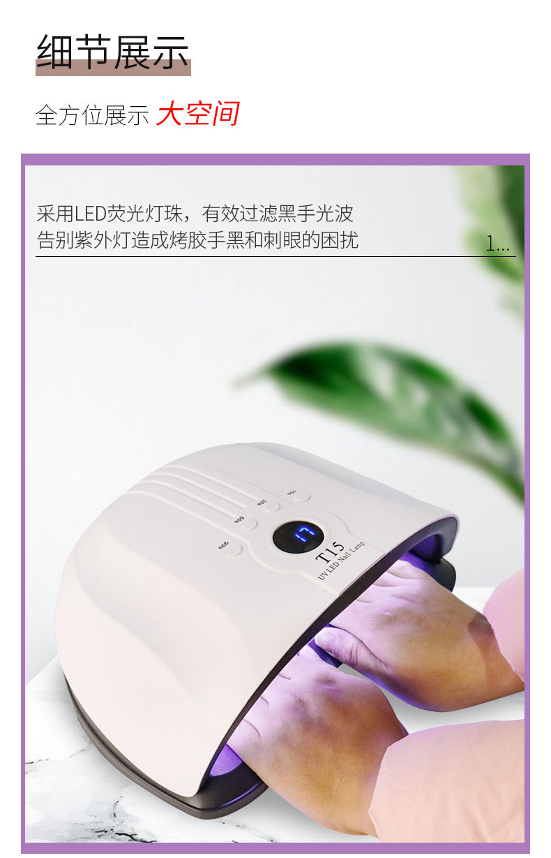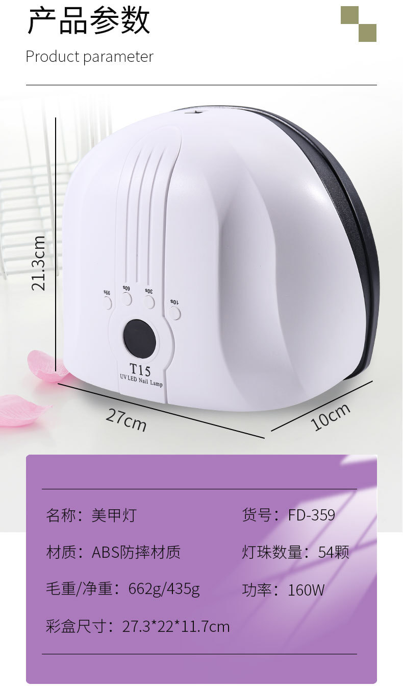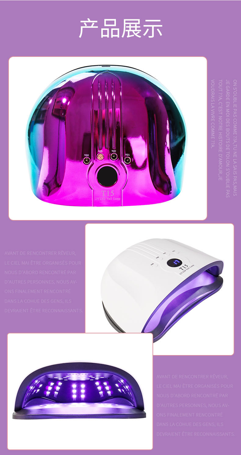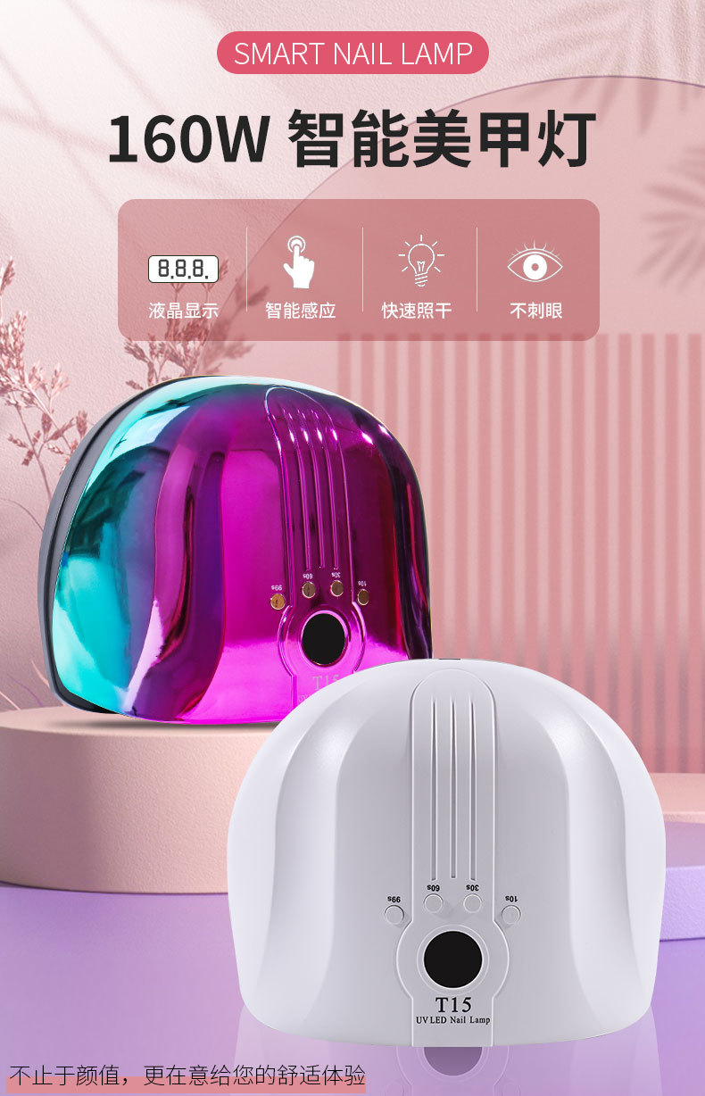 T15智能美甲灯 160W美甲灯54颗双光源灯珠珍珠烤漆不易刮花美甲灯专供出口 English | 投诉