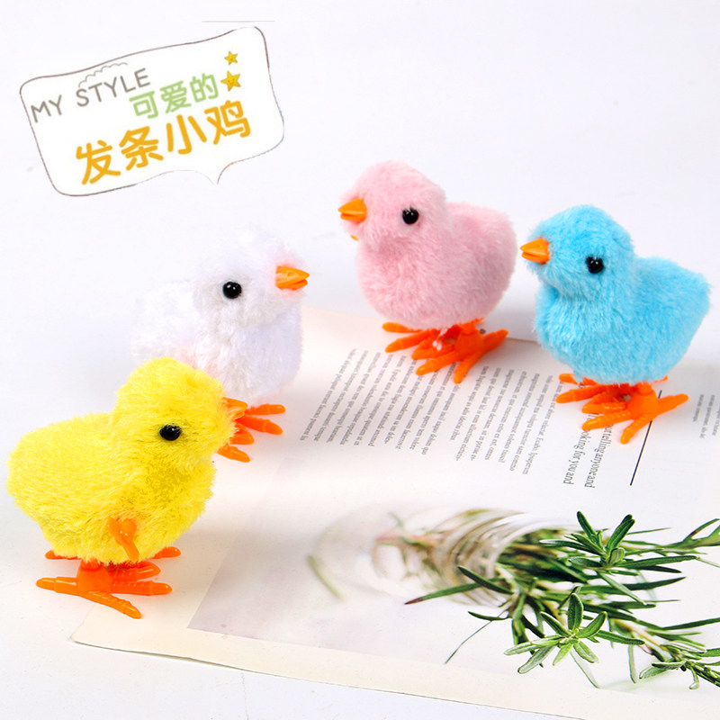 上链发条小鸡仿真毛绒玩具儿童可爱跳跳小鸡上链怀旧玩具抖音同款