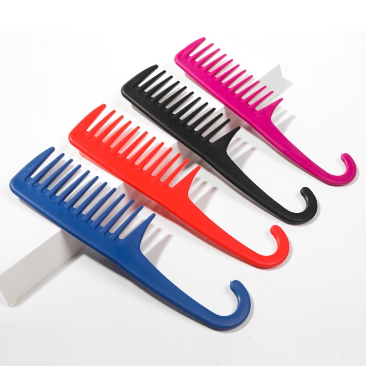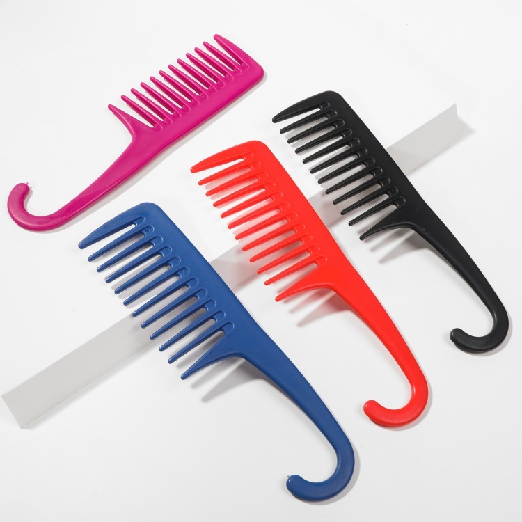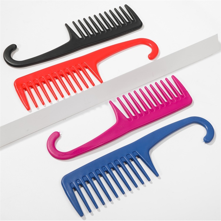 外贸热卖塑料彩色宽齿弯钩美发扁梳
