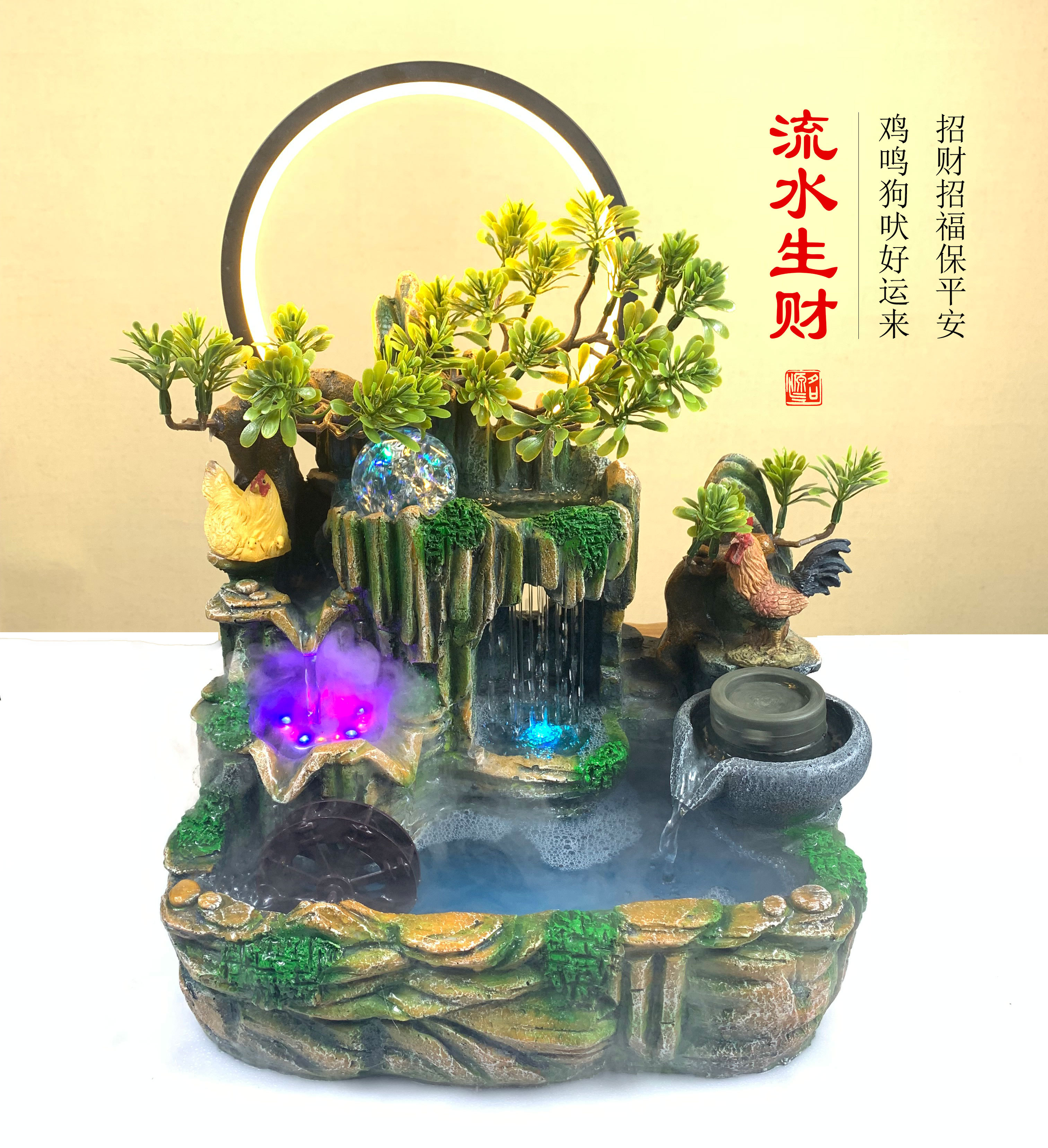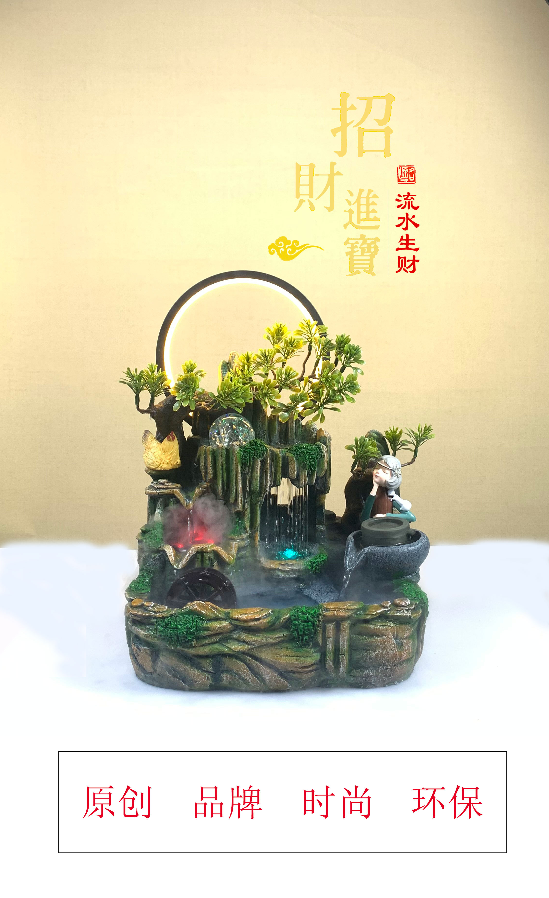 流水生财原创品牌时尚环保假山流水喷泉工艺品盆景摆件