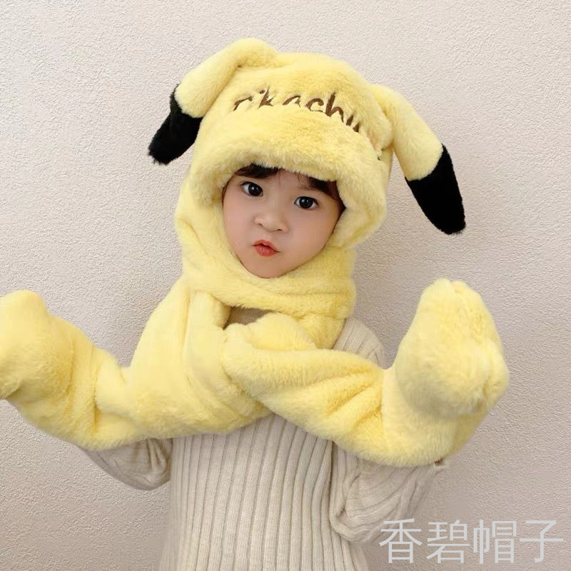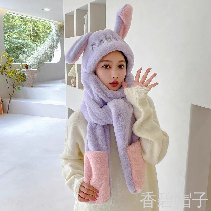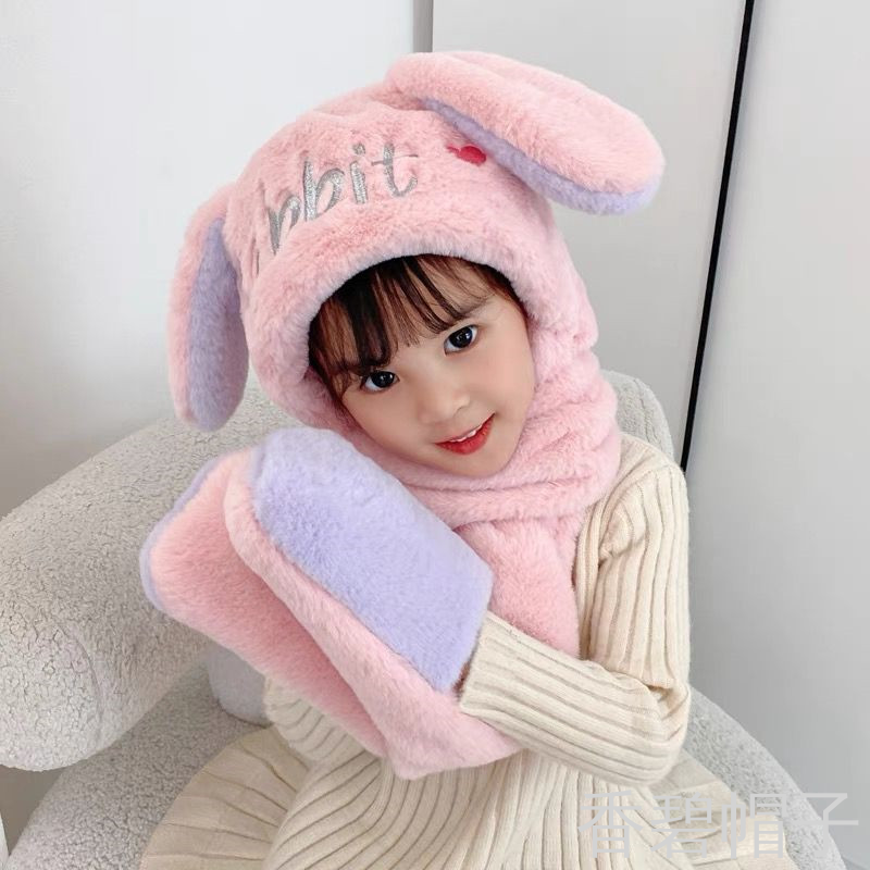 小兔毛绣花字母一体帽帽子围巾手套三件套