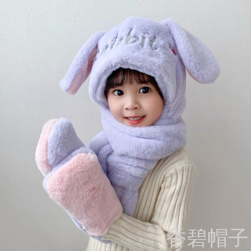 小兔毛绣花字母一体帽帽子围巾手套三件套 English | 投诉