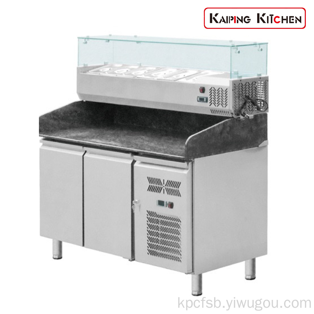 石国T用内部和外部的比萨柜台都是不锈钢的,底部有圆角,便