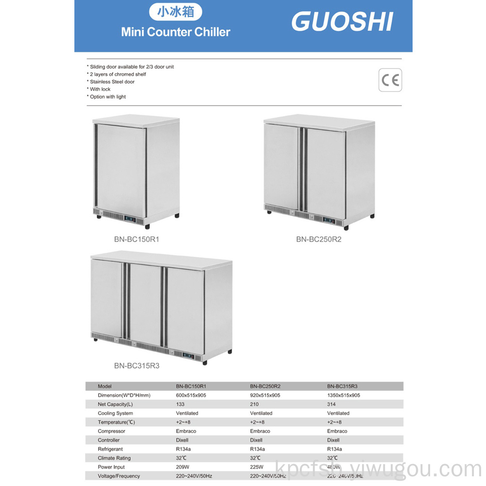 小冰箱迷你柜式冷却器滑动门适用于2/3门单元2层镀铬shef cE不锈