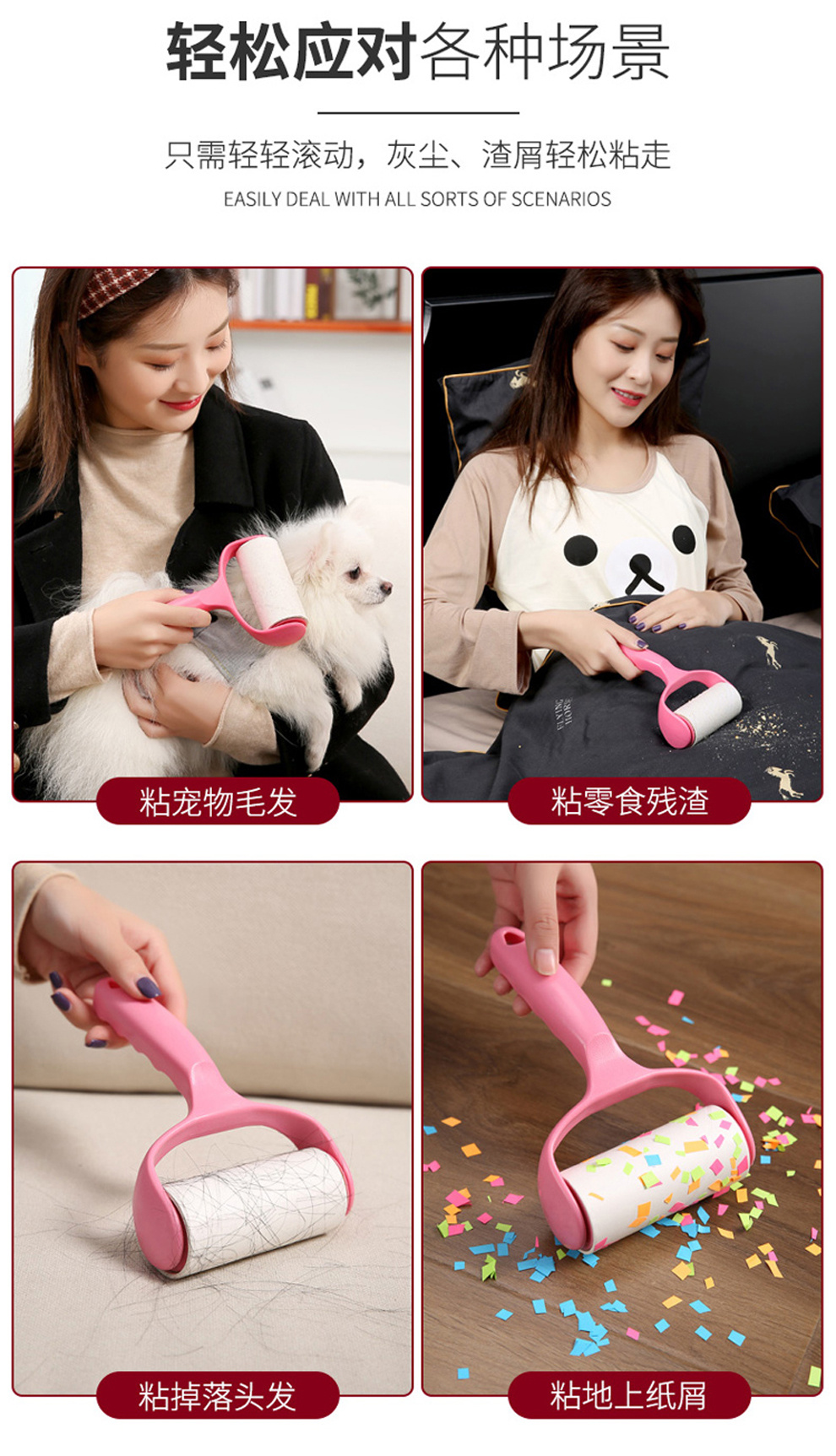产品用途:有效粘除毛发、灰尘、实物残渣、纸屑等