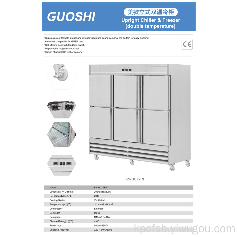 石国美款立式双温冷柜)直立式冷水机组;冰箱(双温)内部和外部