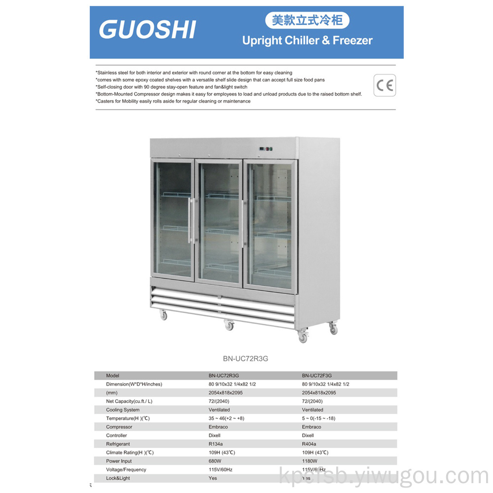 美款立式冷柜立式冷水机组。冰箱内部和外部均为不锈钢