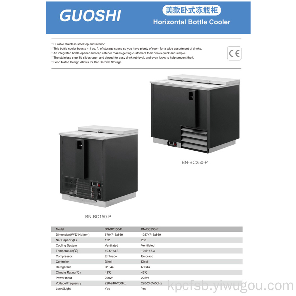 石国美款卧式冻瓶柜卧式瓶冷却器耐用的不锈钢s*eel顶部和内