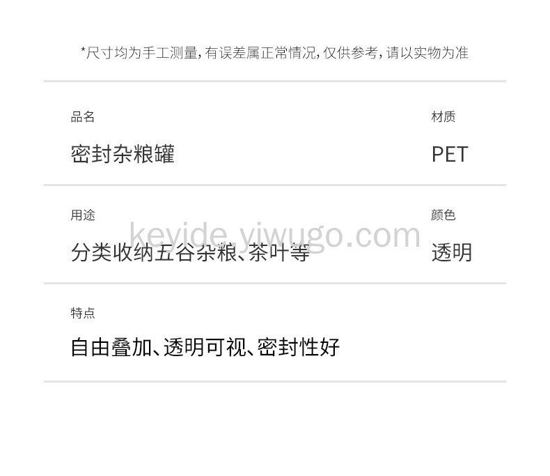 用途 分类收纳五谷杂粮、茶叶等