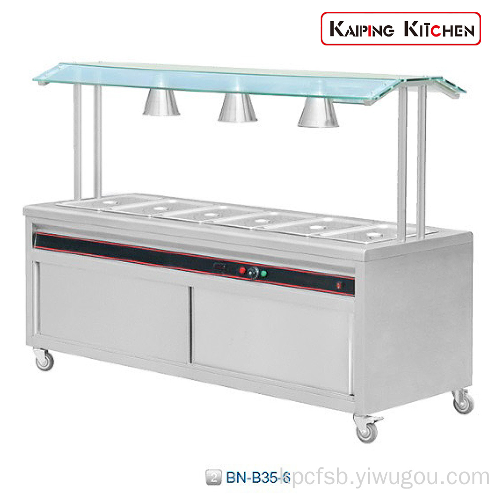 ②BN-B35-6 2电单通式六格保温汤池带玻璃上架 6-Pan Electric Ba