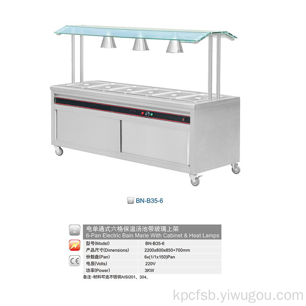 ②BN-B35-6 2电单通式六格保温汤池带玻璃上架 6-Pan Electric Ba 投诉