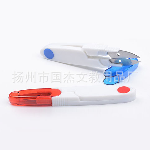 多彩透明带盖小剪刀弹簧纱剪鱼线剪刀 安全四色带帽纱剪U型剪刀 投诉