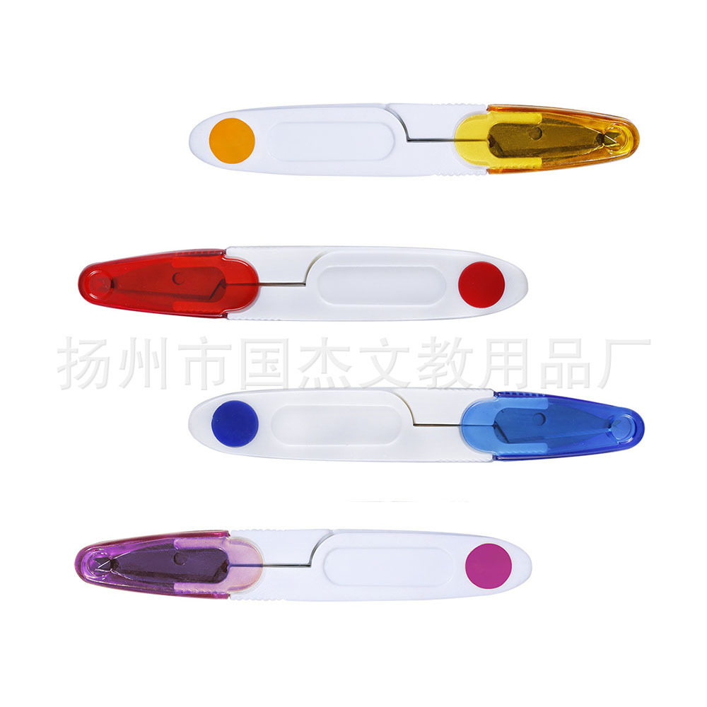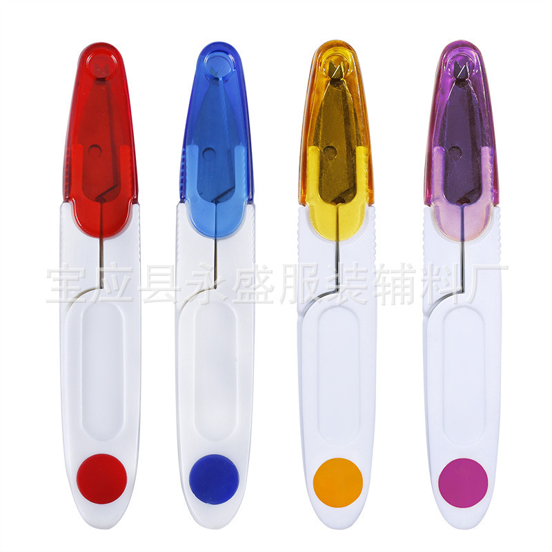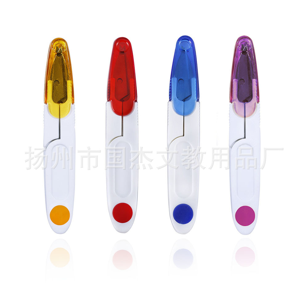 多彩透明带盖小剪刀弹簧纱剪鱼线剪刀 安全四色带帽纱剪U型剪刀