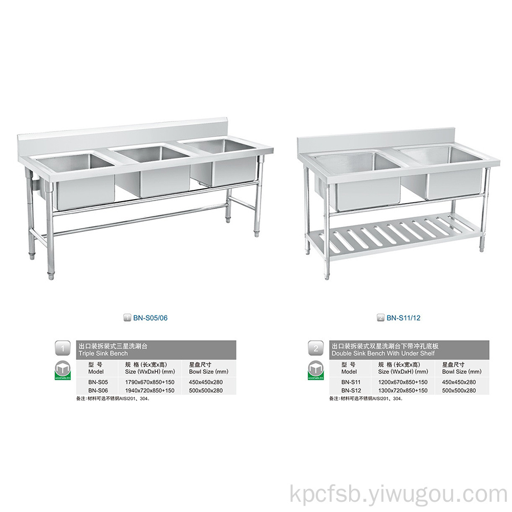 2BN-S11/12出口装拆装式双星洗测台下带冲孔底板Double Sink Benc 投诉