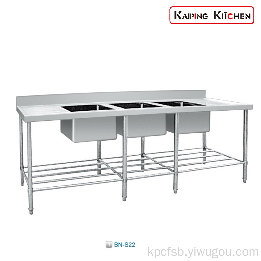 BN-S22 拆装式三星洗涮台(机制盆) Triple Sink Bench With Pot