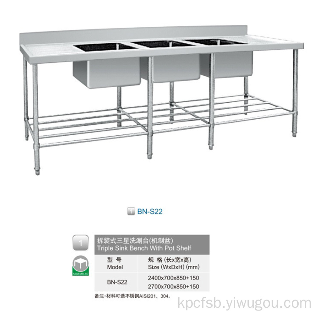 BN-S22 拆装式三星洗涮台(机制盆) Triple Sink Bench With Pot 投诉