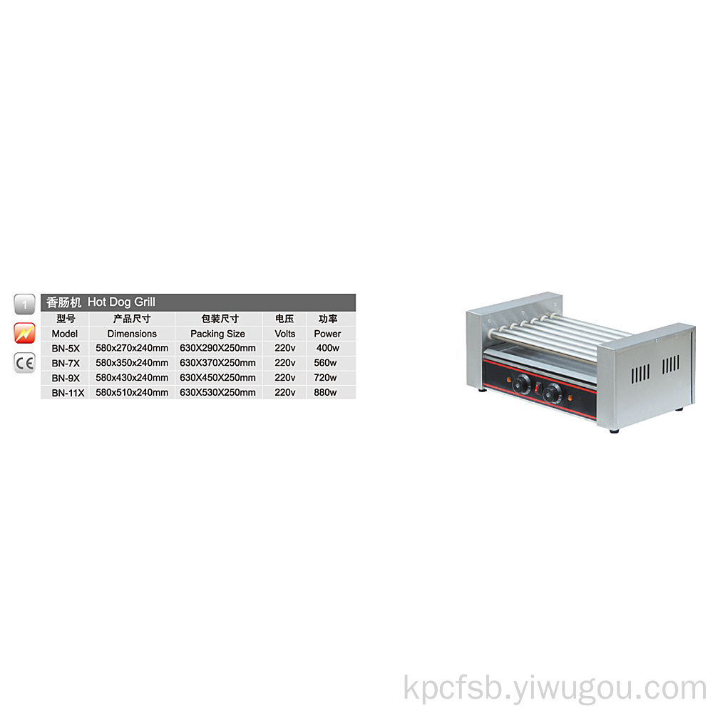 ?香肠机热狗烧烤型号产品尺寸包装尺寸电压功率型号尺寸包装
