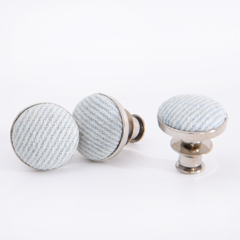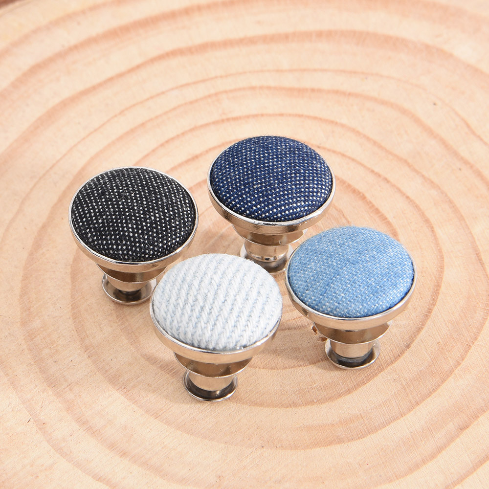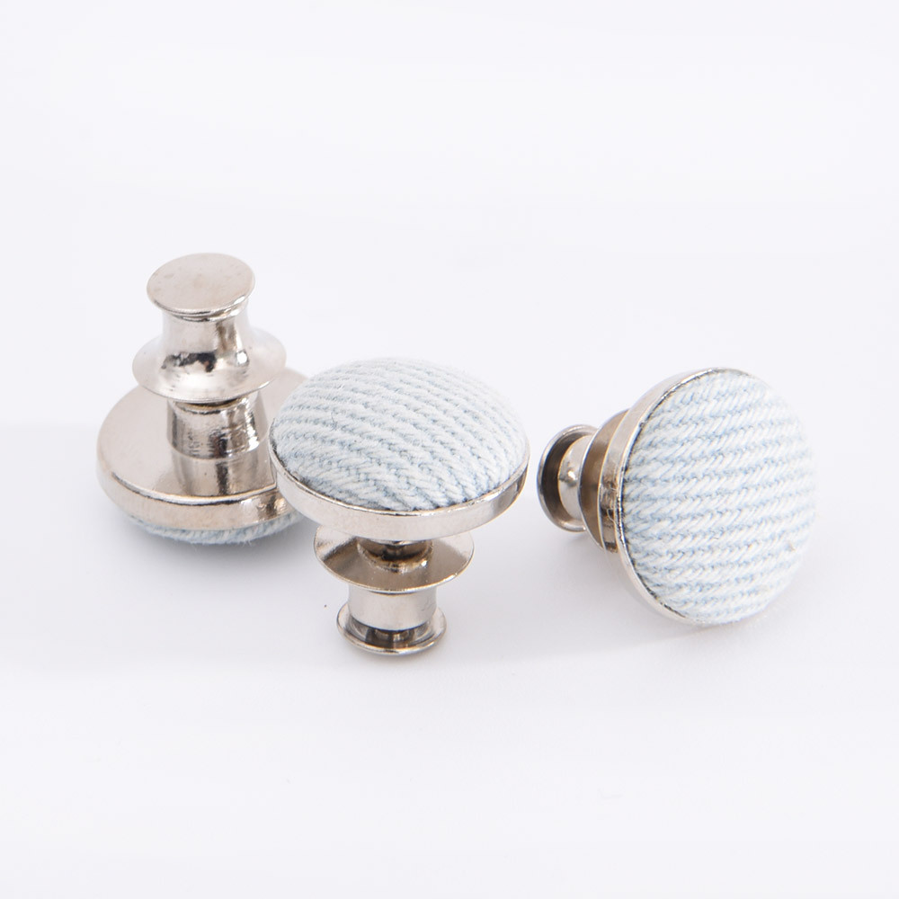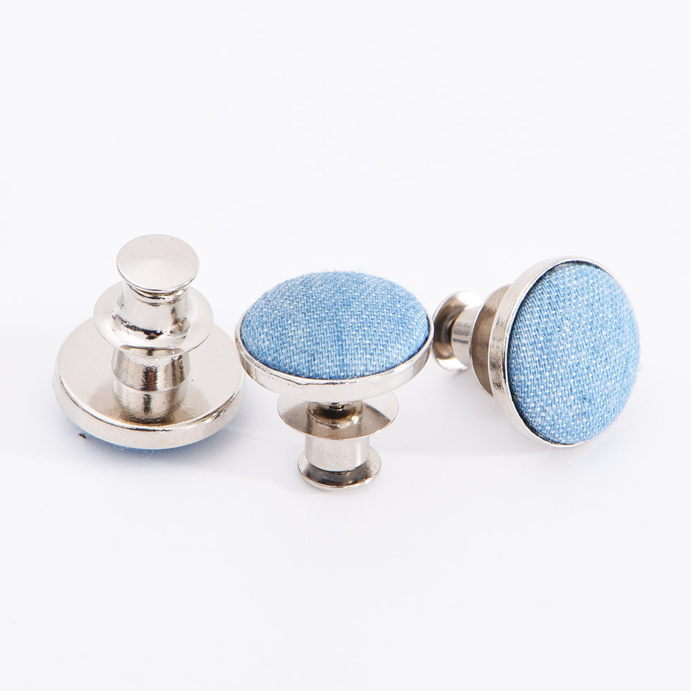牛仔裤纽扣由铜,铁,不锈钢或锌合金制成,有不同类型,如橡胶芯,活动钉,单钉 和双钉。对于牛仔裤纽扣来说,通常的尺寸是17mm和20mm,除了有扣子功能外,更起装饰作用。