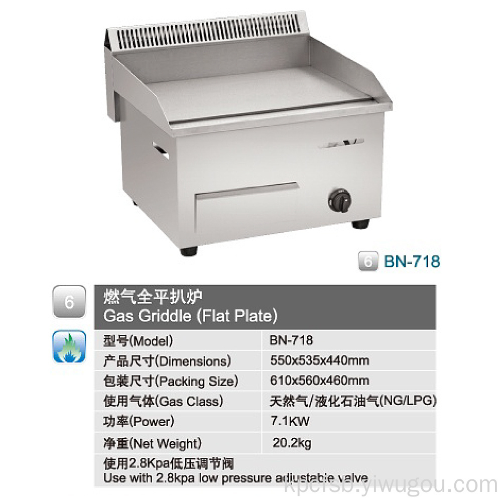 6燃气全平扒炉燃气烤架(平板)型号(型号)BN-718产品尺寸(尺寸)550