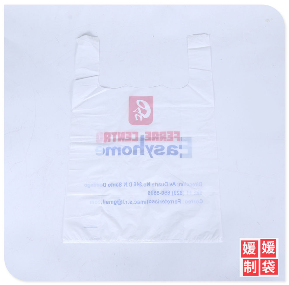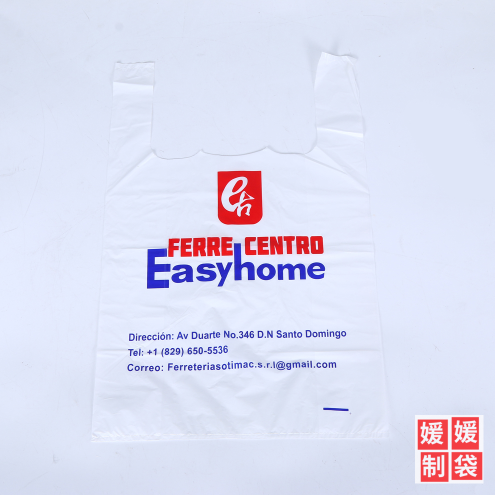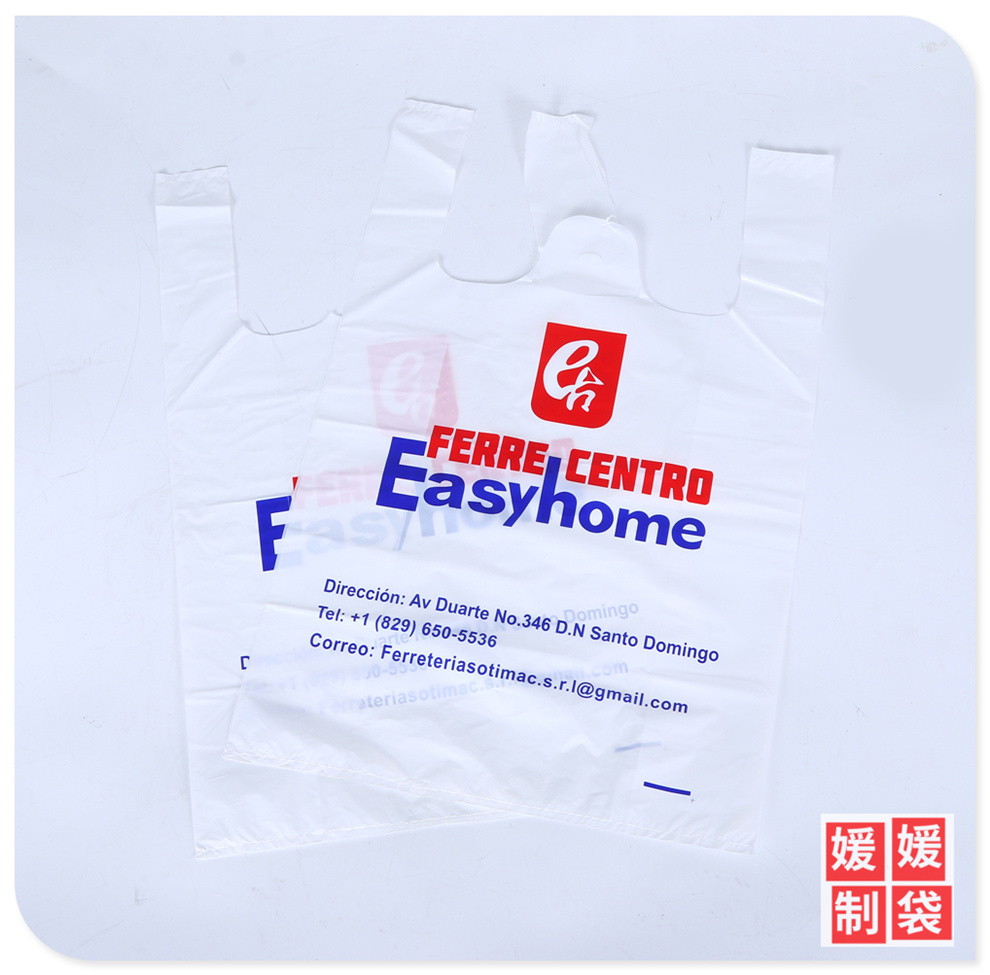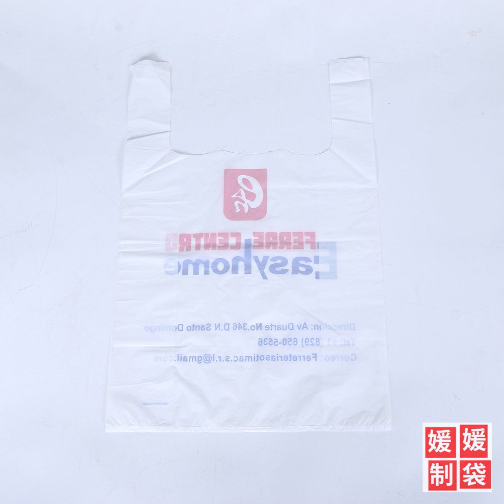 产品名称:英文字母logo外销款背心式塑料袋可定做服装袋扣手袋多用手提包装