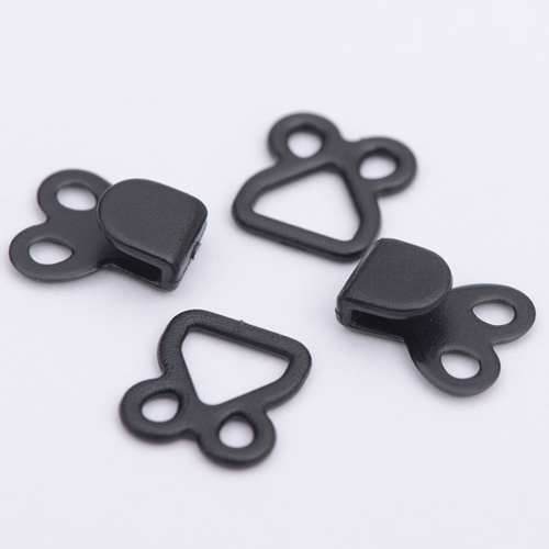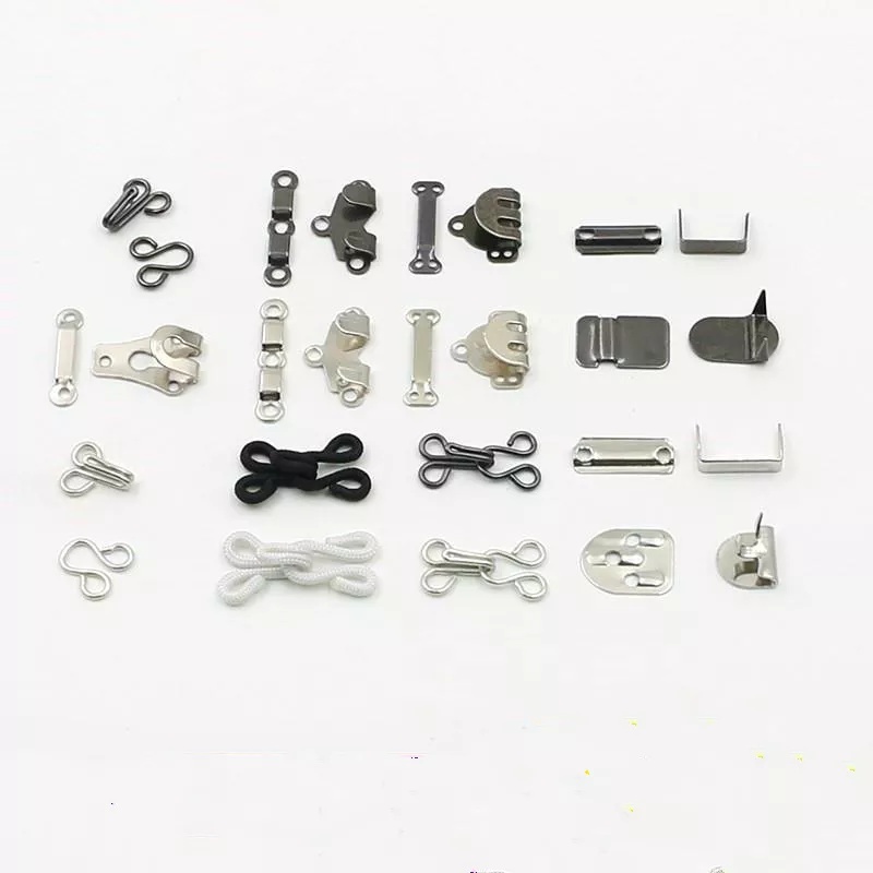 金属裤钩主要用于西裤、休闲裤和女式裙子上。比较结实,不容易脱落,使用上比较方便。材质上有铜、铁、不锈钢等;款式上有四件套和两件套。