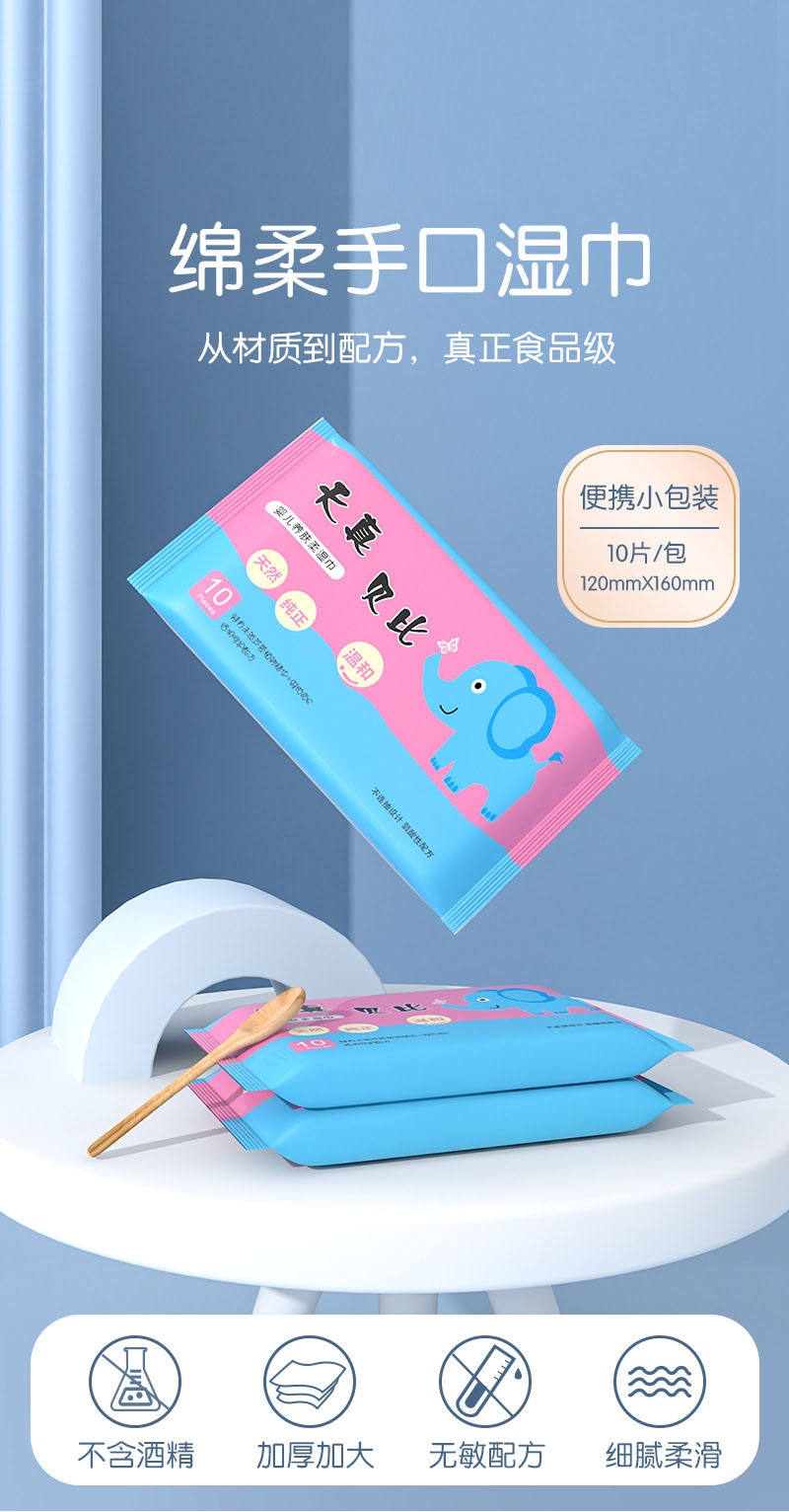 儿童湿巾10片装婴儿湿巾小包抽取式便携湿纸巾十片抽湿巾母婴店