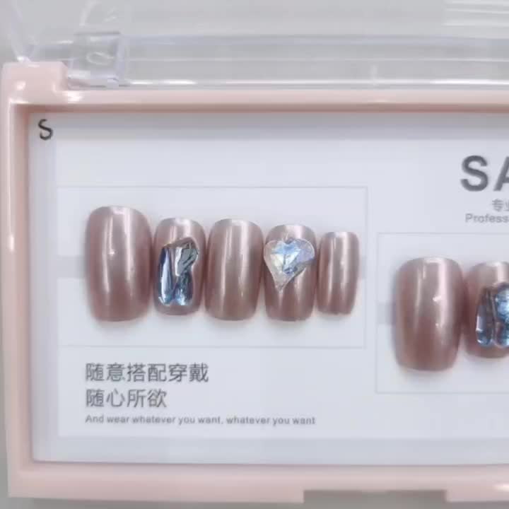 新款手工穿戴甲美甲ins风高级穿戴成品高级感中长款可重复佩戴专供出口 投诉