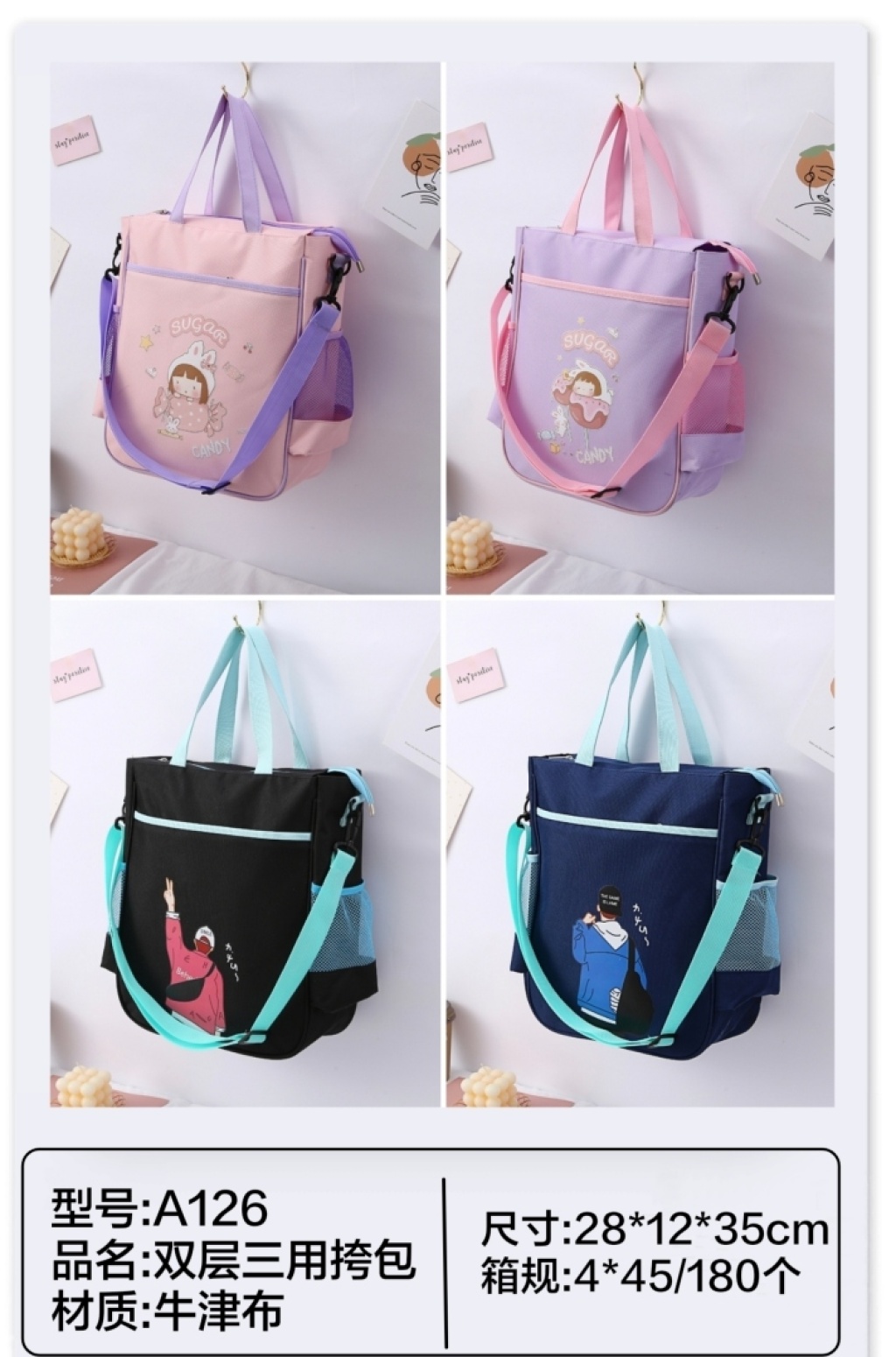 双层收纳,可手提,单肩,斜挎三用背包