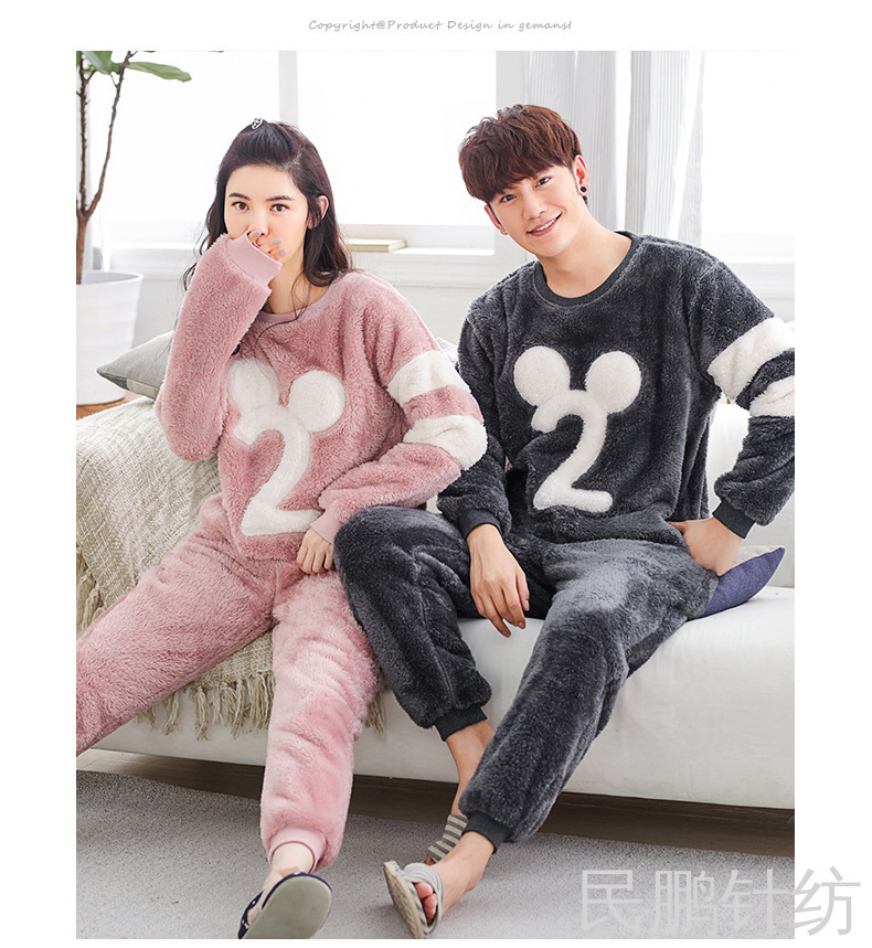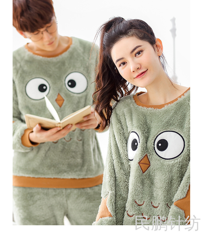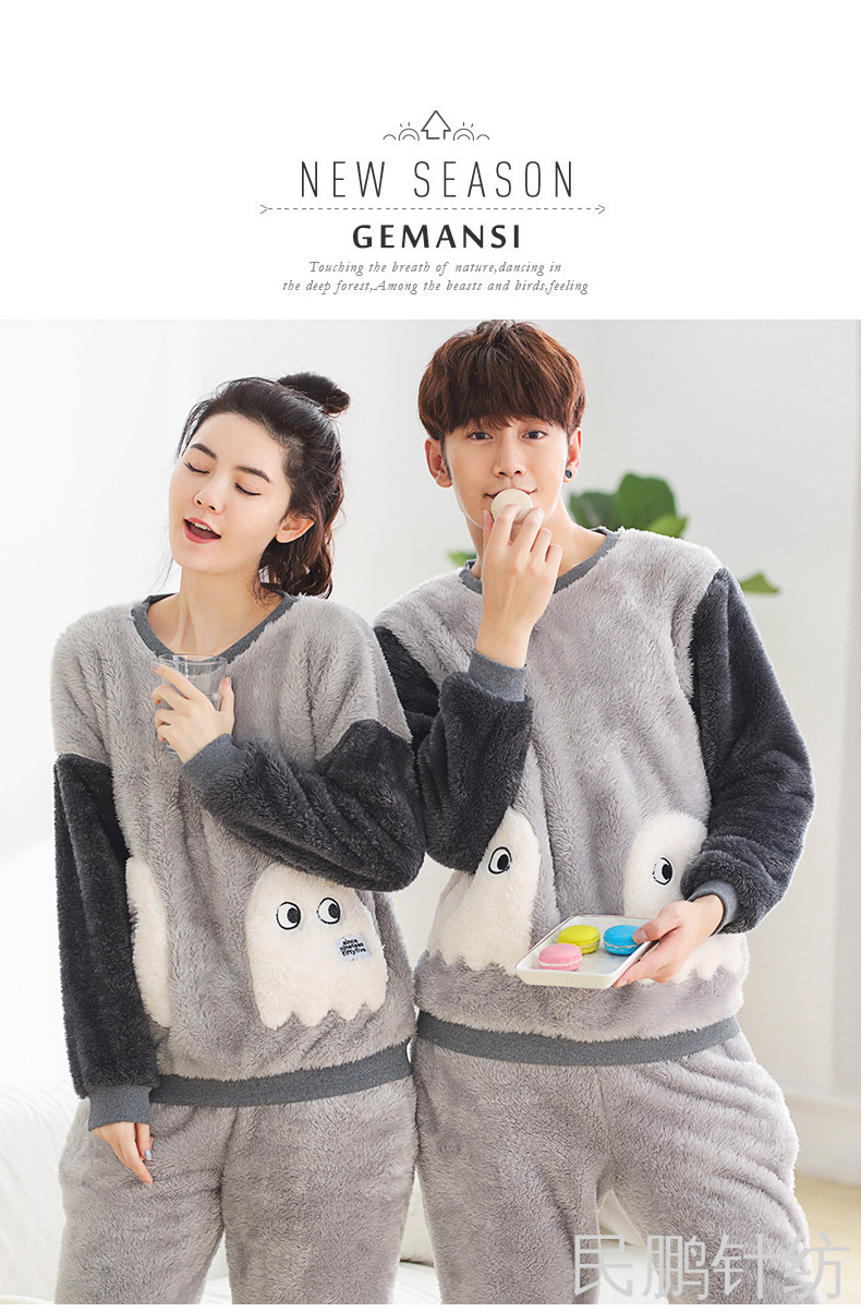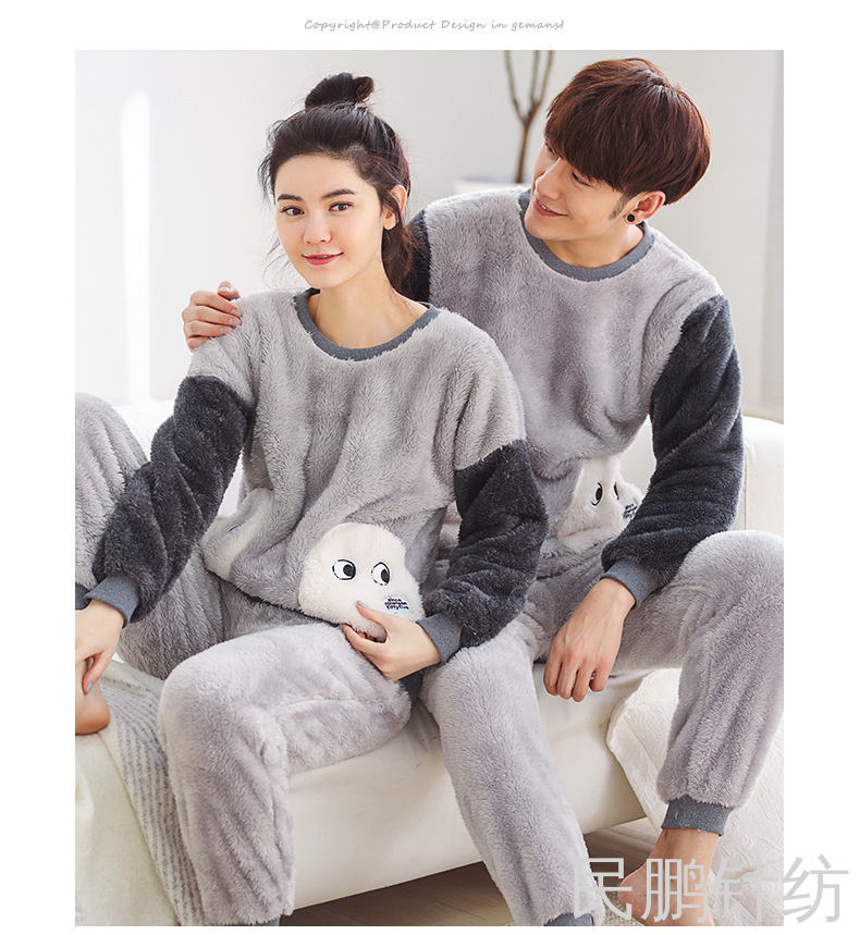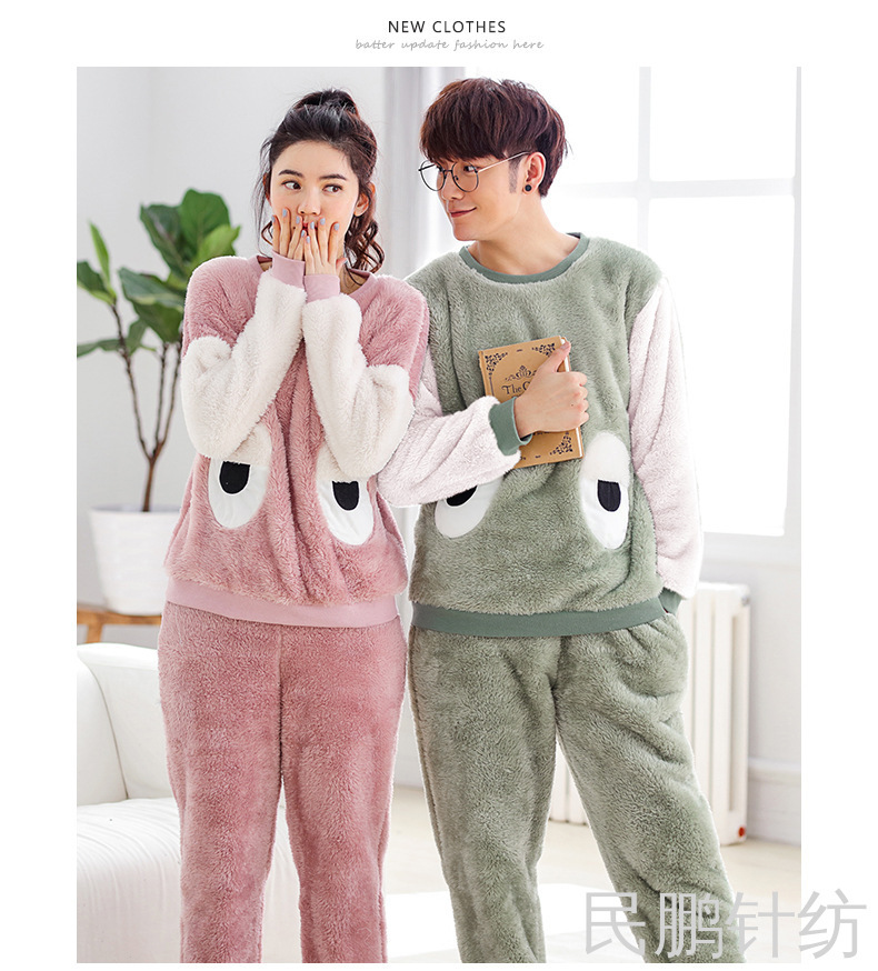 厚法兰绒秋冬睡衣女可爱宽松学生秋冬家居服套装暖暖裤