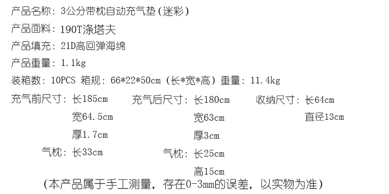 厂家批发户外充气垫床垫户外自动充气垫防潮垫帐篷垫九点迷彩 投诉