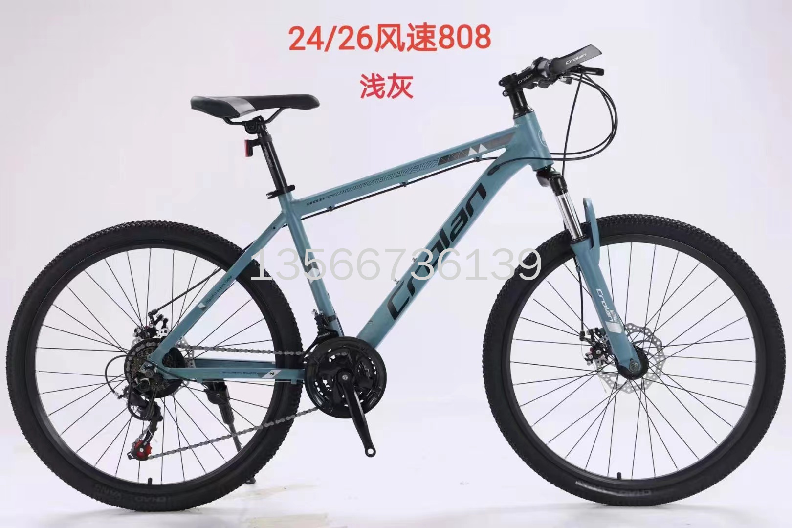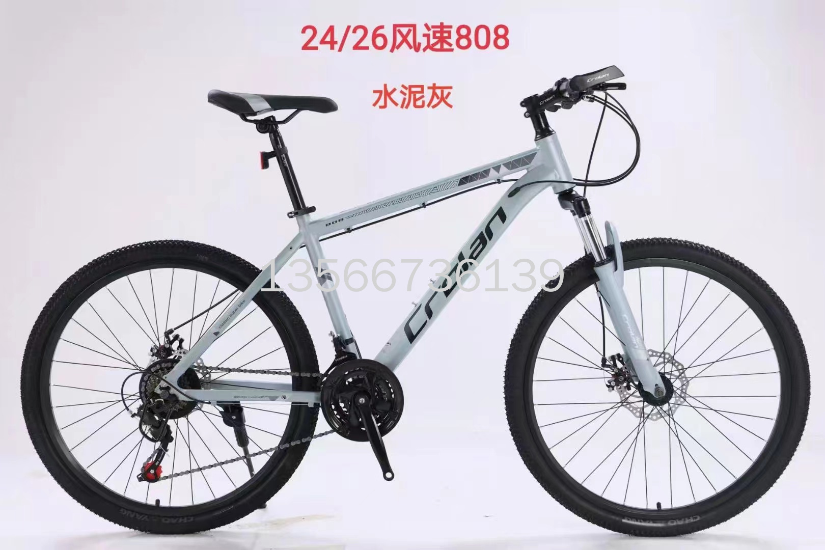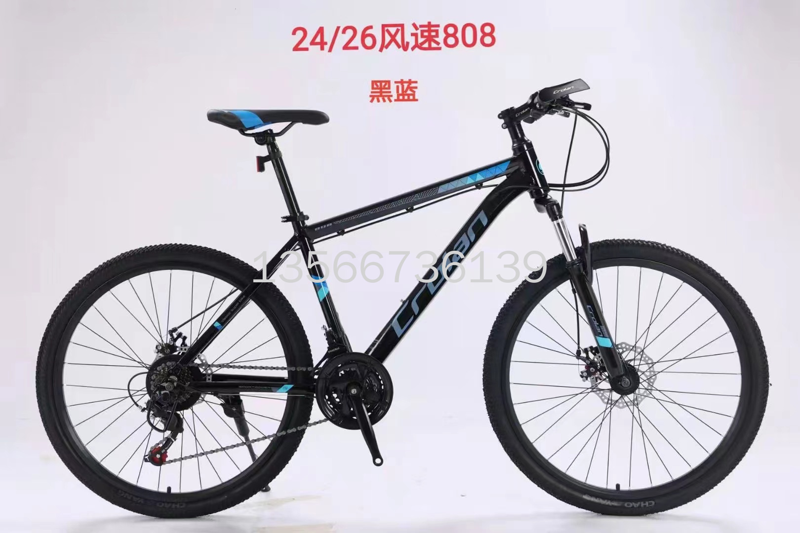 山地自行车,24/26寸,变速自行车,禧玛诺变速自行车,男女通用,21速自行车风速808,铝合金车架,密封中轴+防水螺丝,黑32孔四角刀圈,卡式碟刹轴皮。本店不支持七天无理由退换货。