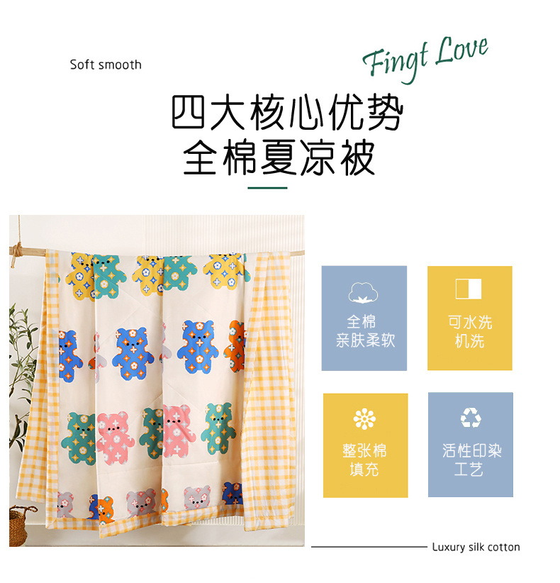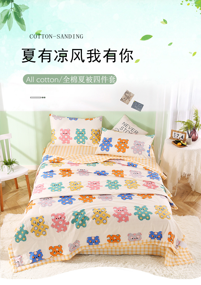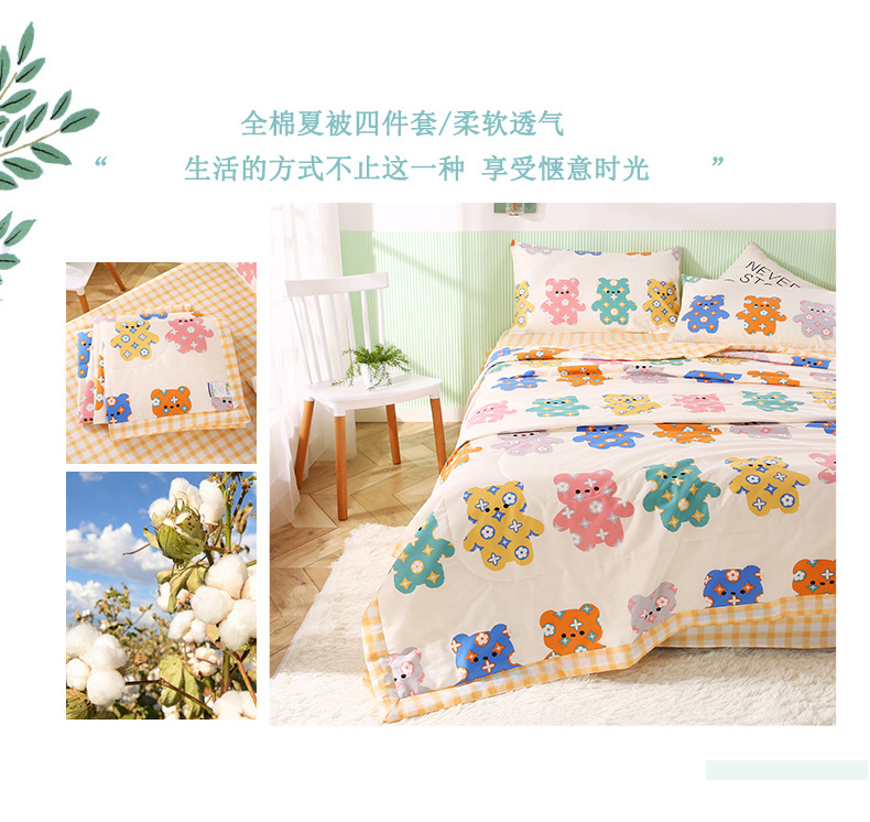 安博家纺2026全棉13372纯棉夏凉被四件套空调被夏凉被七彩熊