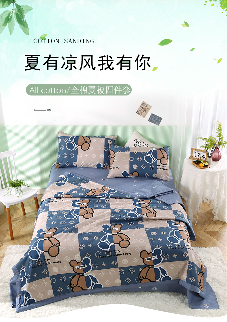安博家纺2026全棉13372纯棉夏凉被四件套空调被夏凉被比利熊灰