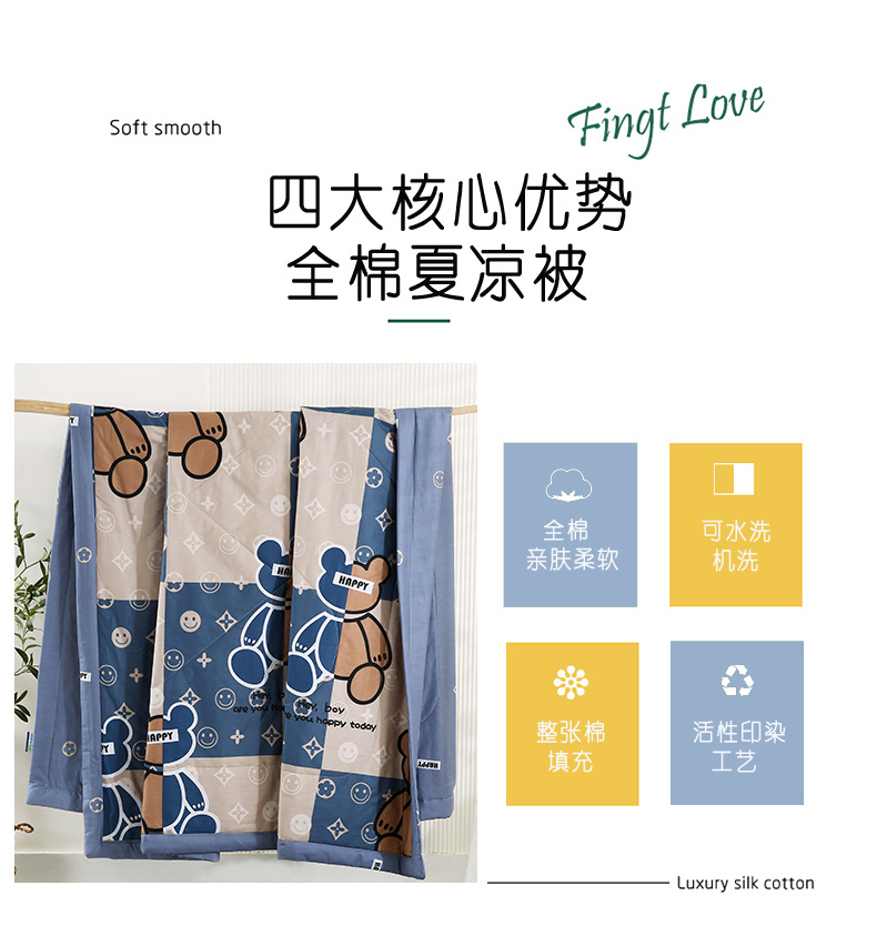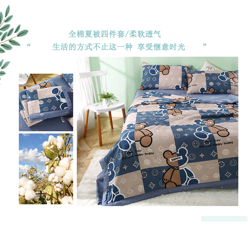 安博家纺2026全棉13372纯棉夏凉被四件套空调被夏凉被比利熊灰 投诉