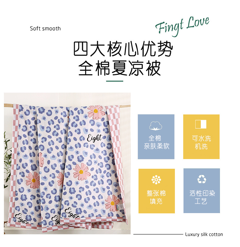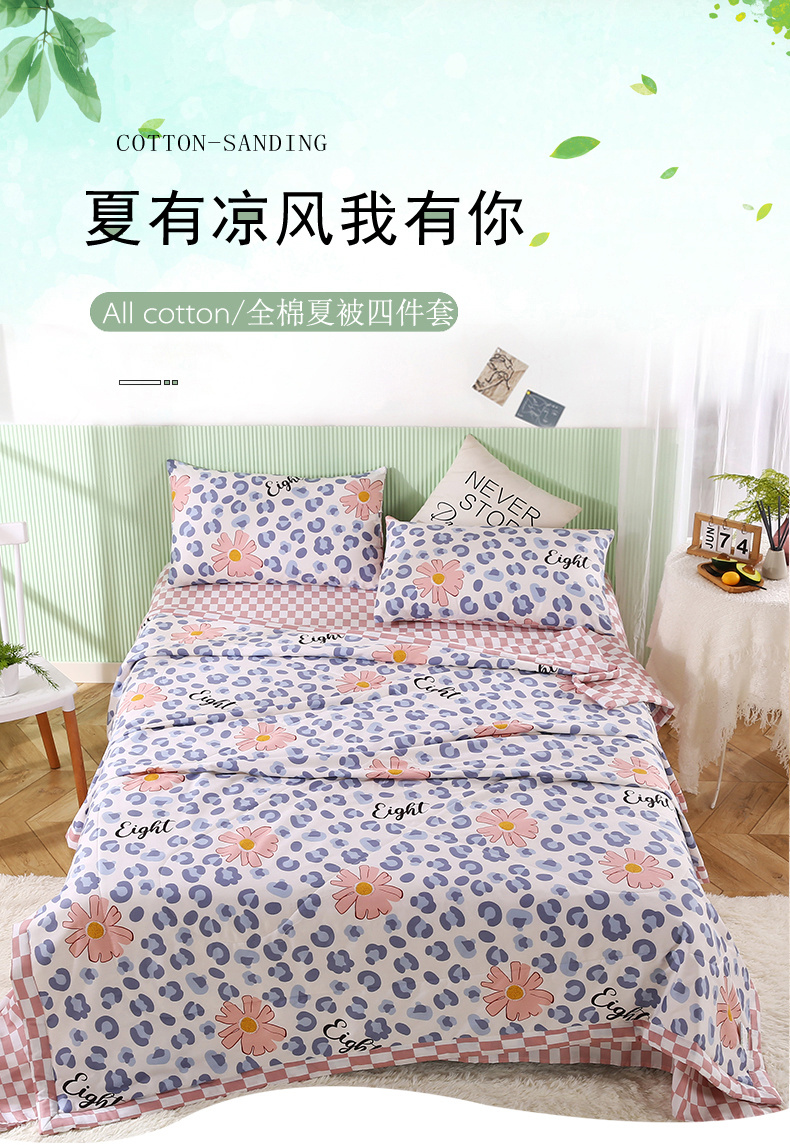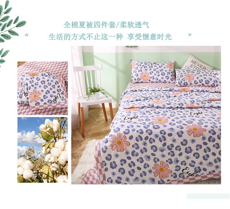 安博家纺2026全棉13372纯棉夏凉被四件套空调被夏凉被生如夏花