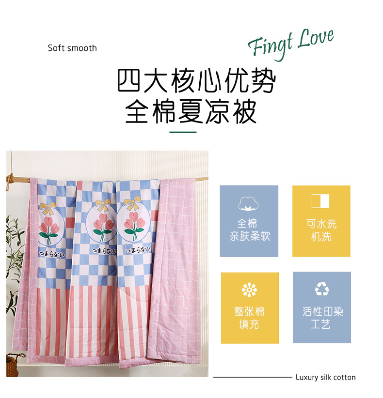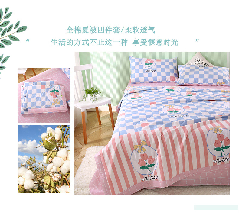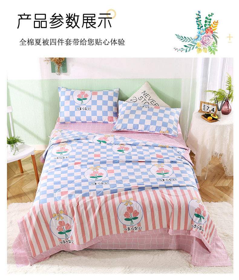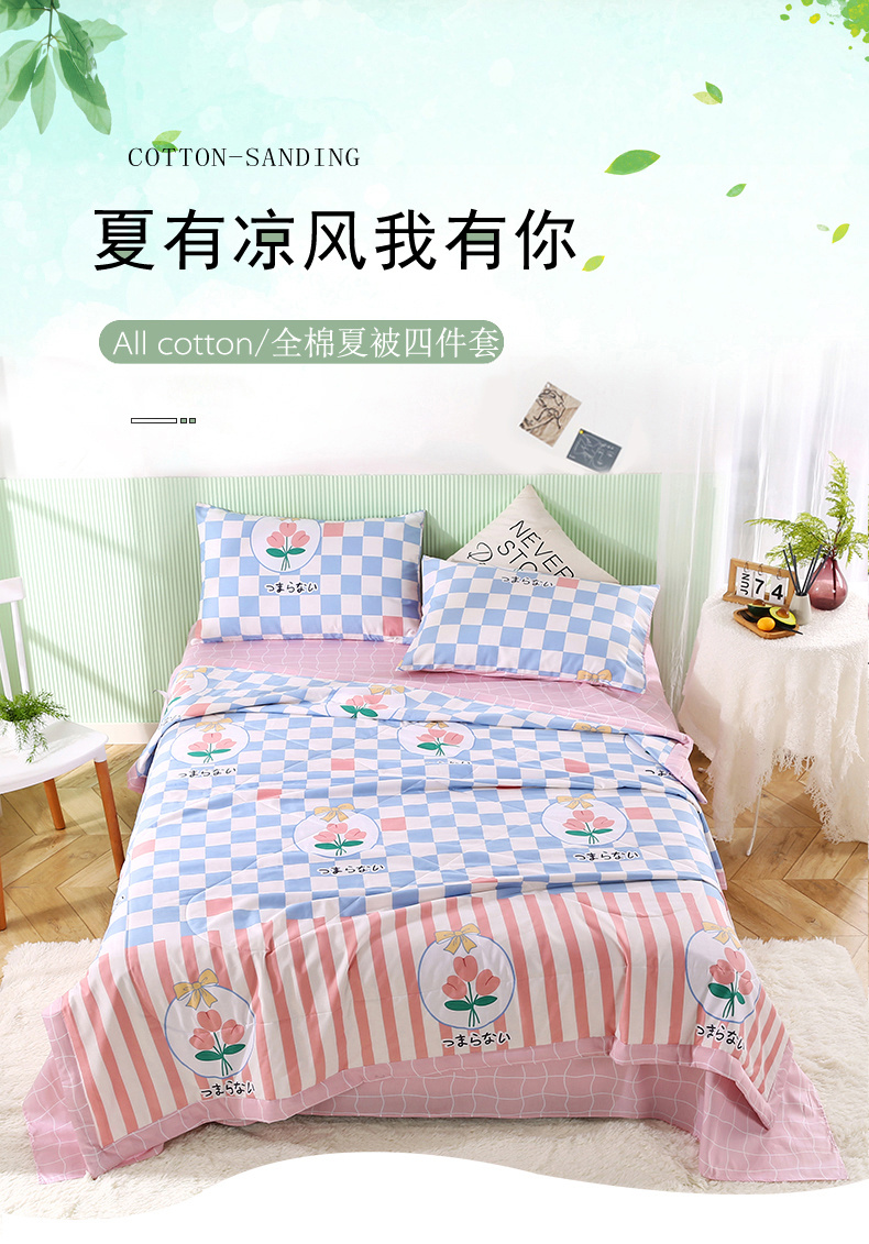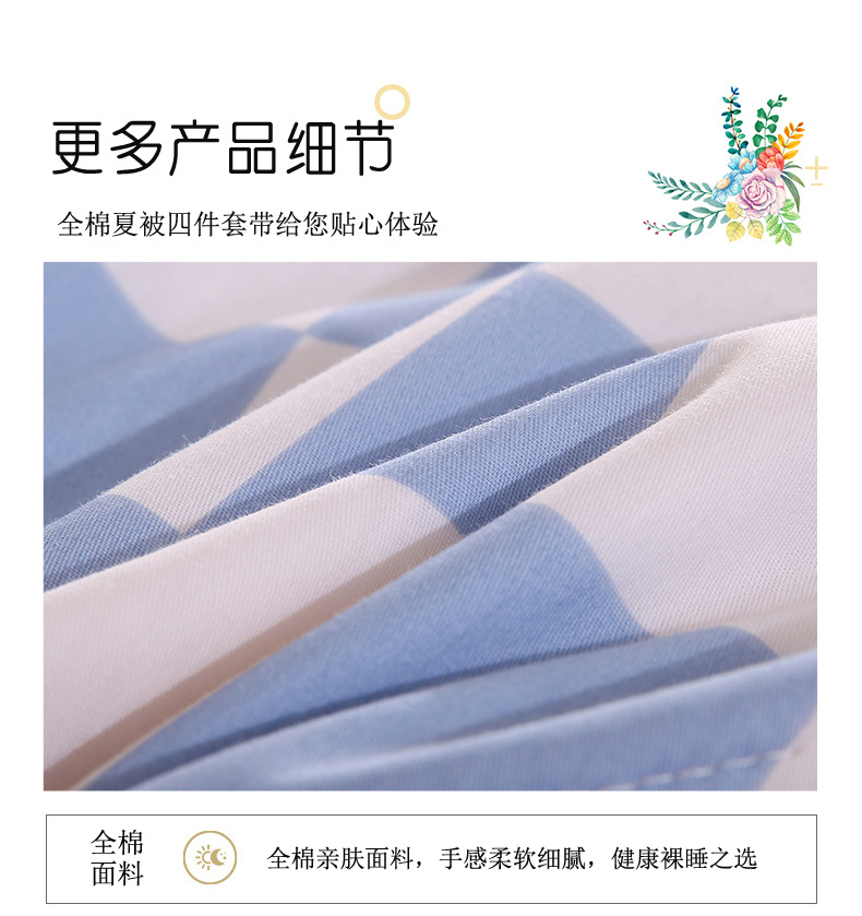 安博家纺2026全棉13372纯棉夏凉被四件套空调被夏凉被沁花海